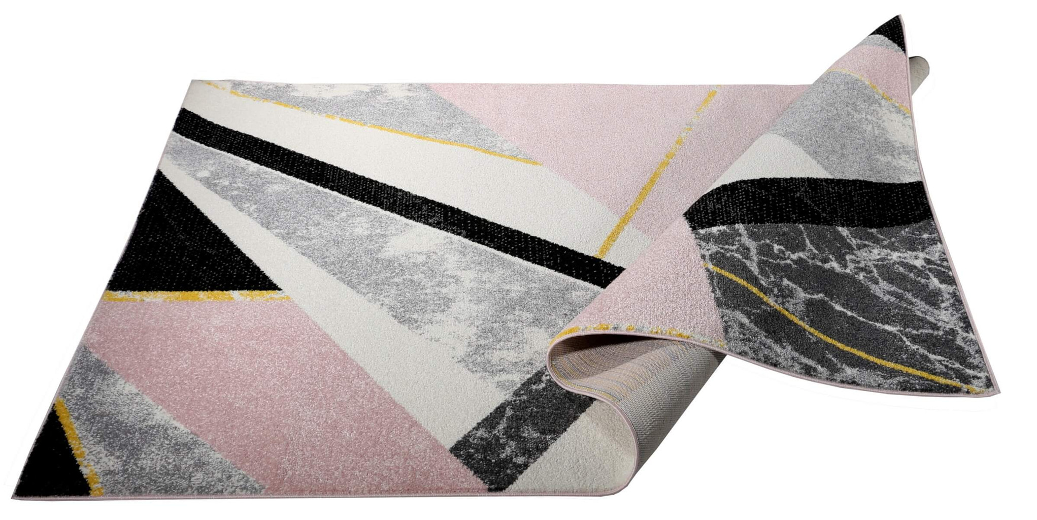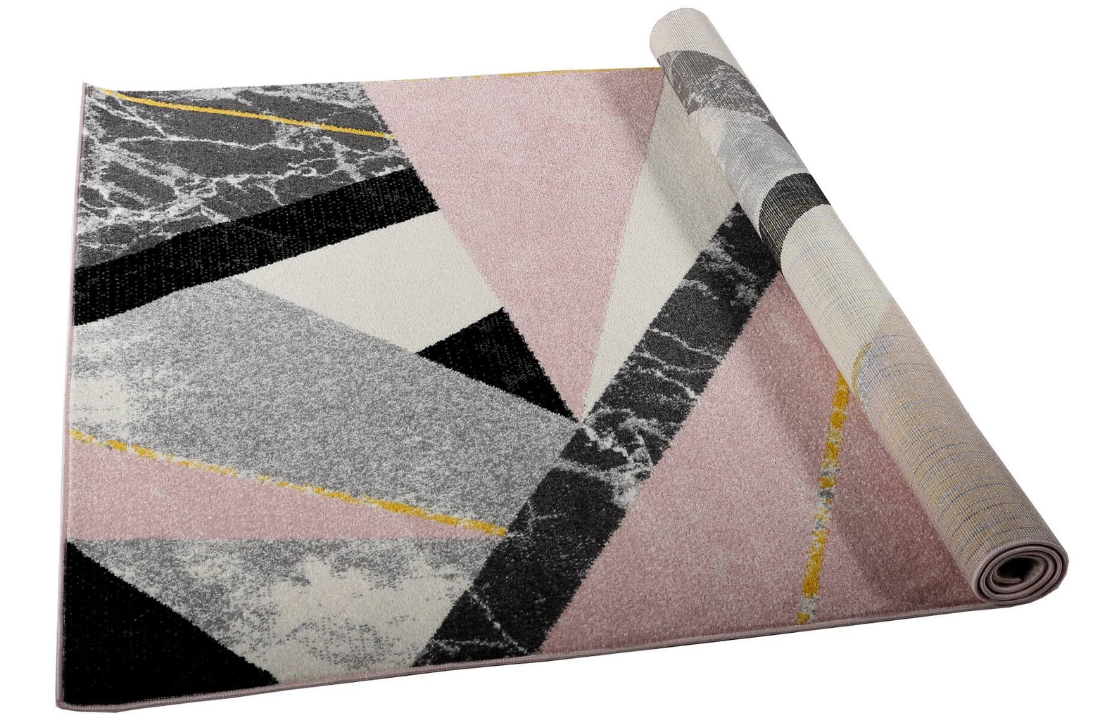 Szukasz niezwykłego i eleganckiego dodatku do swojego ulubionego miejsca w domu? Myślę, że ten dywan spełni te oczekiwania! Róż, czerń, szarość i biel, a to wszystko stworzone z prostych figur geometrycznych otoczonych marmurem i zakończonych złotym akcentem. Dodatkowo, użyte w produkcji włókna heat set frise wpływają na wysoką jakość, trwałość i zachowanie kolorów dywanu.