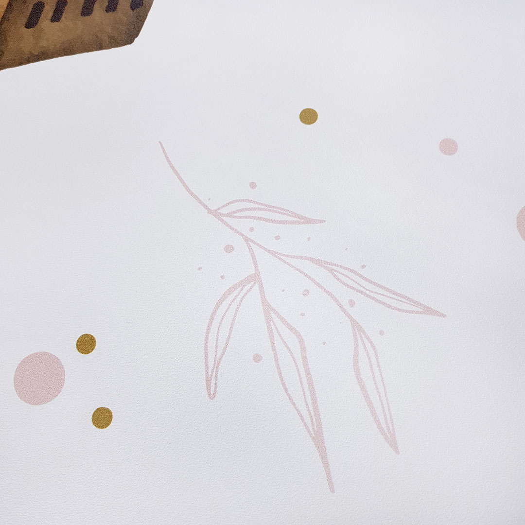 Delikatna, dziewczęca tapeta na ścianę w bajkowe, piernikowe chatki, różowe i brązowe kropki oraz delikatne gałązki. Dzięki możliwości zmiany koloru i wzoru naszych tapet każdy domek może być taki jak chcesz!