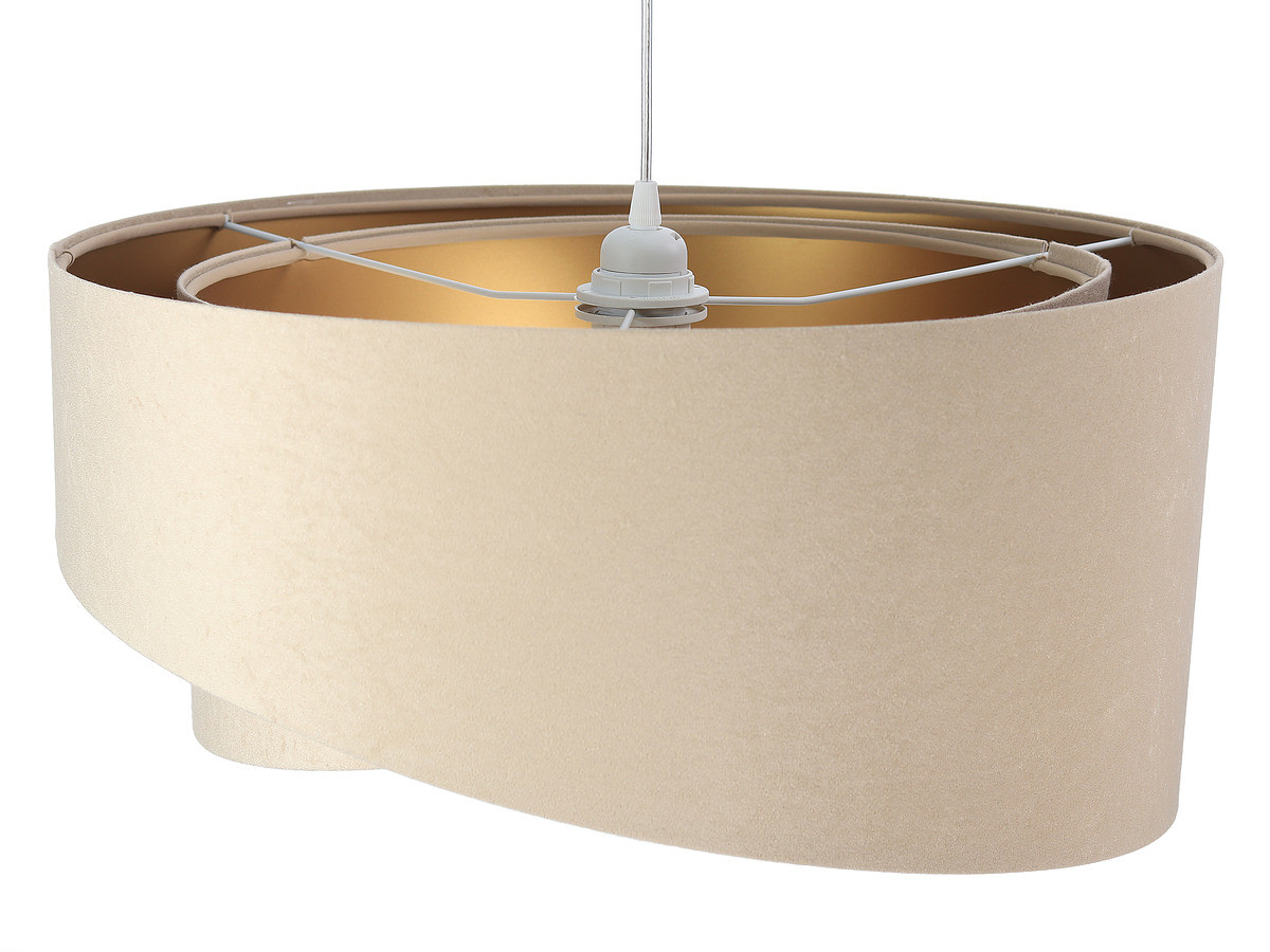 Beżowa lampa wisząca z okrągłym, asymetrycznym kloszem z weluru ze złotym wnętrzem SAMANTA