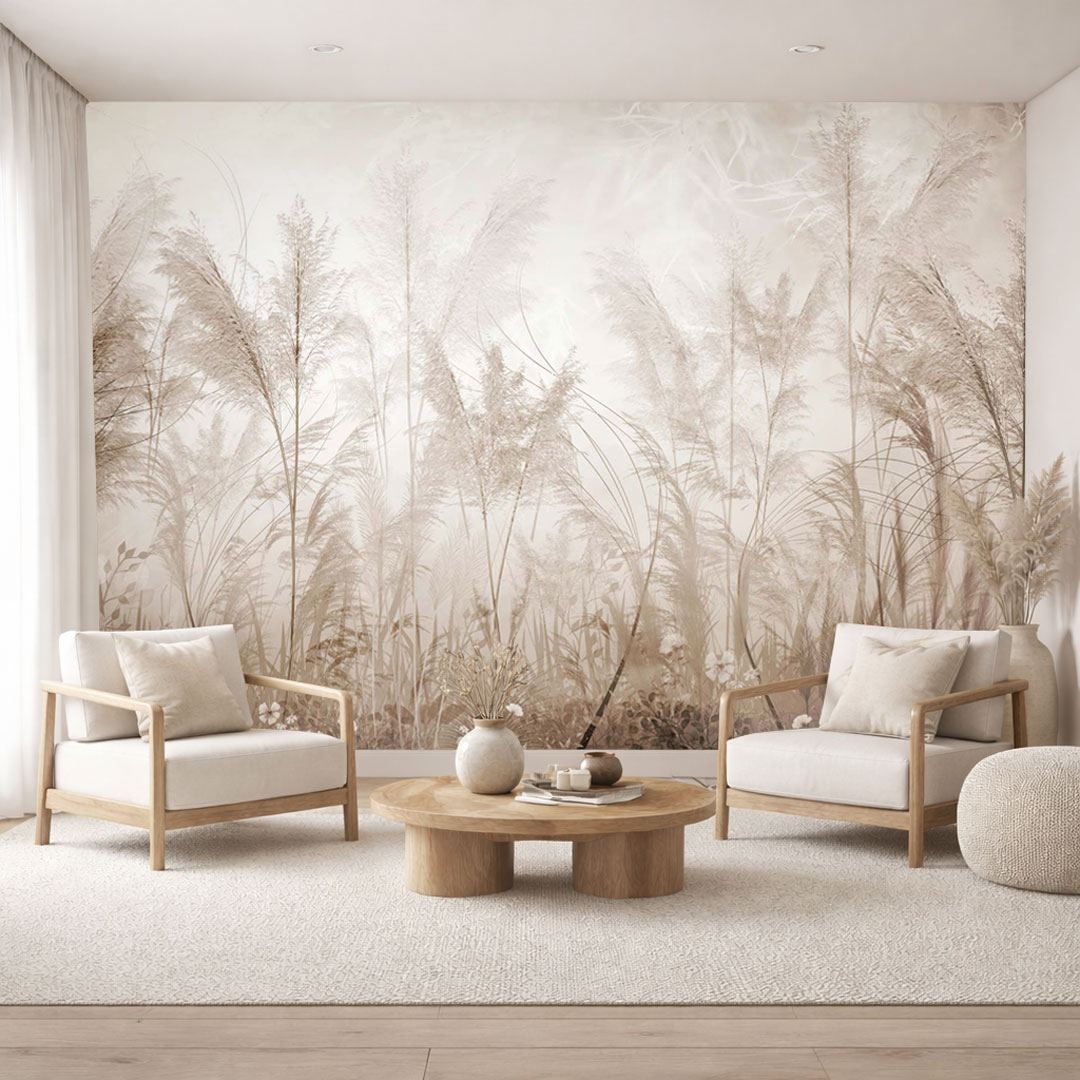 Beżowa tapeta z trawą pampasową w mgle CISZA NATURY to propozycja dla osób, które pragną wprowadzić do wnętrza spokój, harmonię i subtelne piękno natury. Delikatny motyw traw pampasowych zanurzonych w lekkiej, mgle tworzy efekt miękkiego tła, które nie dominuje przestrzeni, a jednocześnie nadaje jej wyjątkowy charakter.