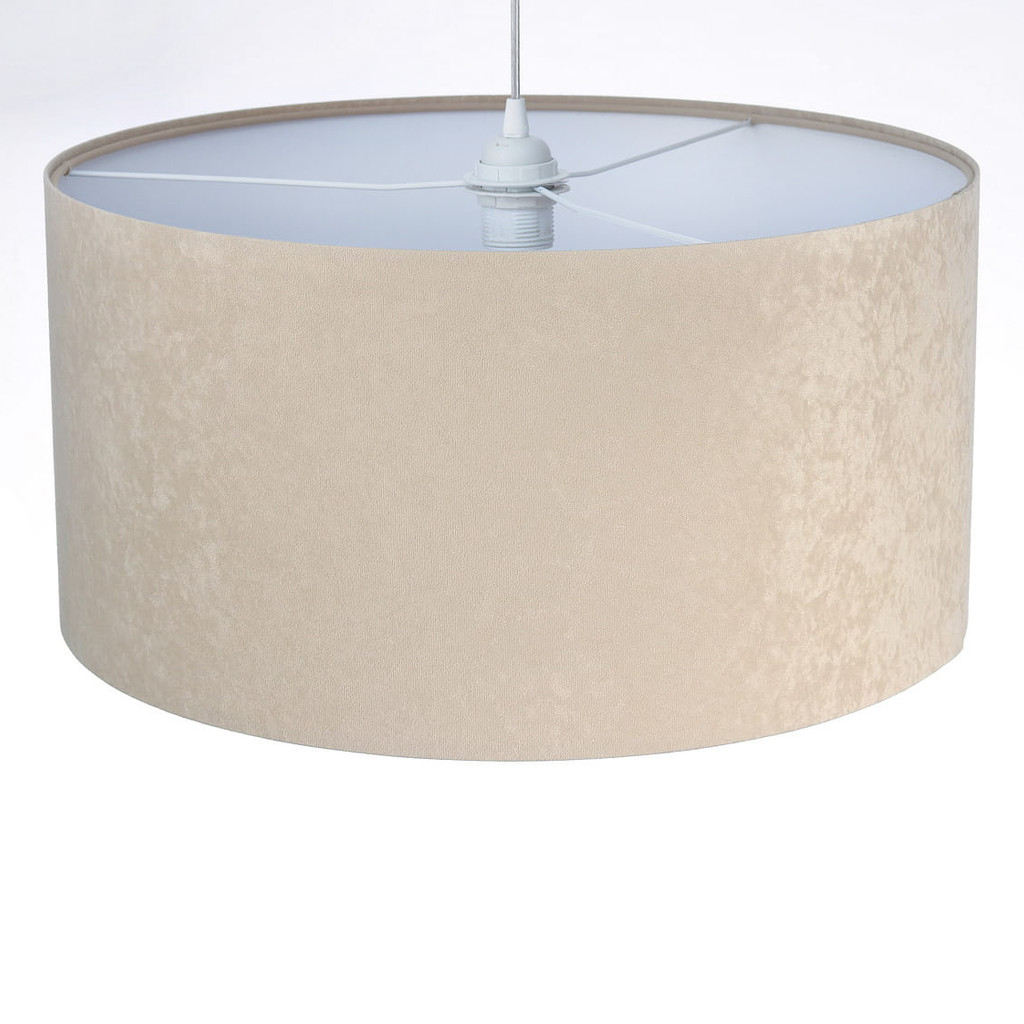 Beżowo-biała lampa wisząca z welurowym kloszem w kształcie walca NIGELLA