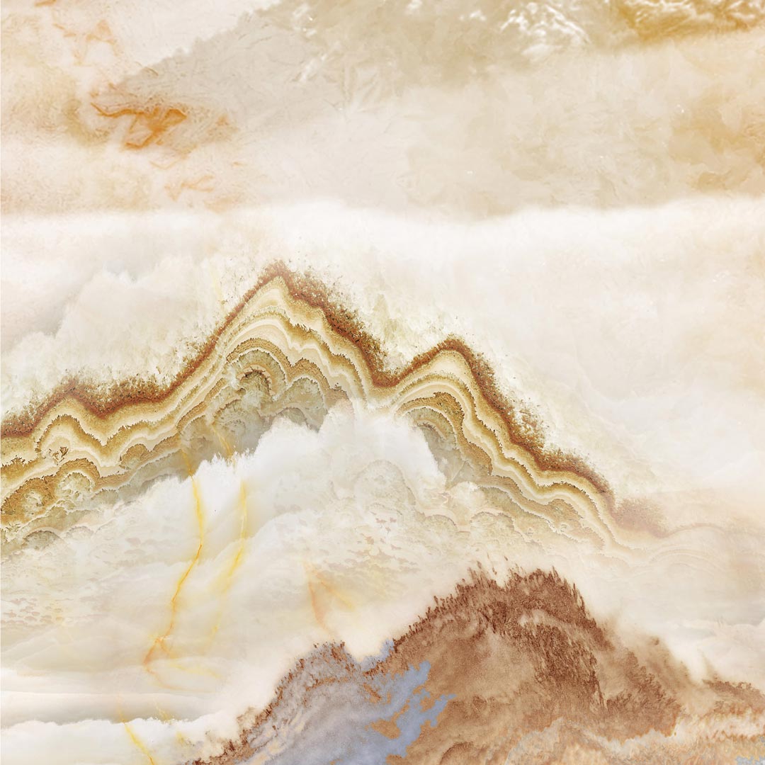 Beżowo-niebieska fototapeta WIERZCHOŁKI GÓR W CHMURACH styl malarski i boho