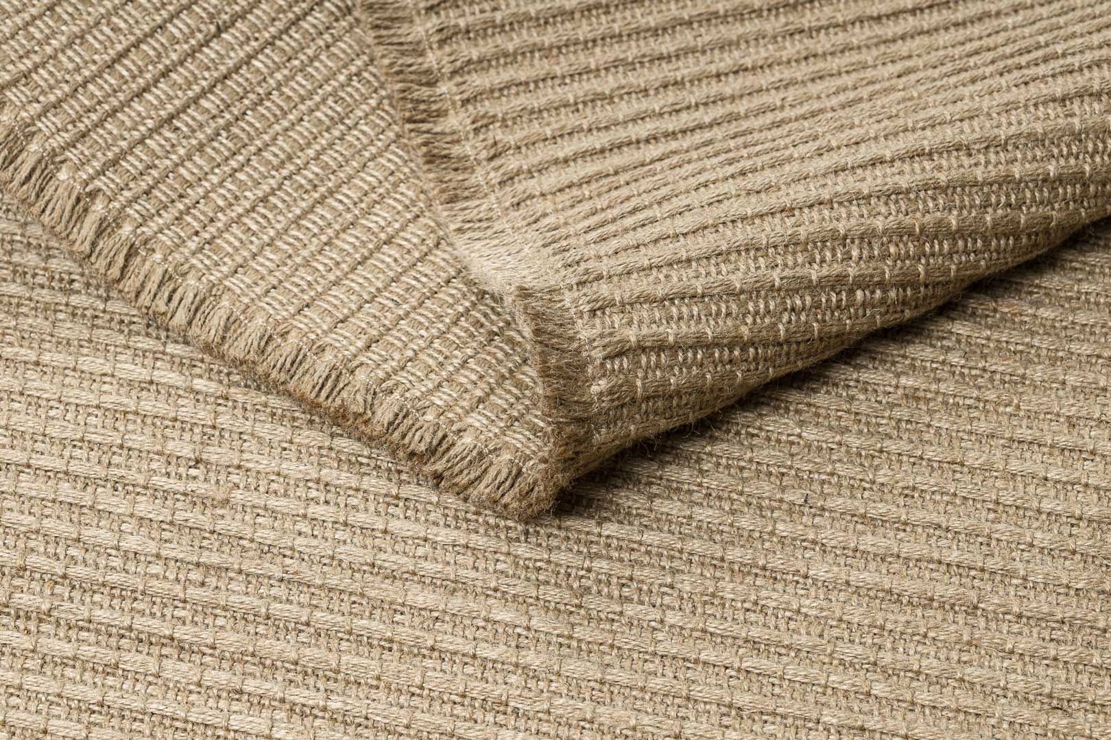 Jego subtelny wzór w linie, w beżowym odcieniu, dodaje wnętrzom lekkości i harmonii, pasując zarówno do nowoczesnych, jak i klasycznych aranżacji. Dywan został płasko tkany, co sprawia, że jest łatwy w utrzymaniu czystości, a jednocześnie prezentuje się bardzo elegancko i stylowo.