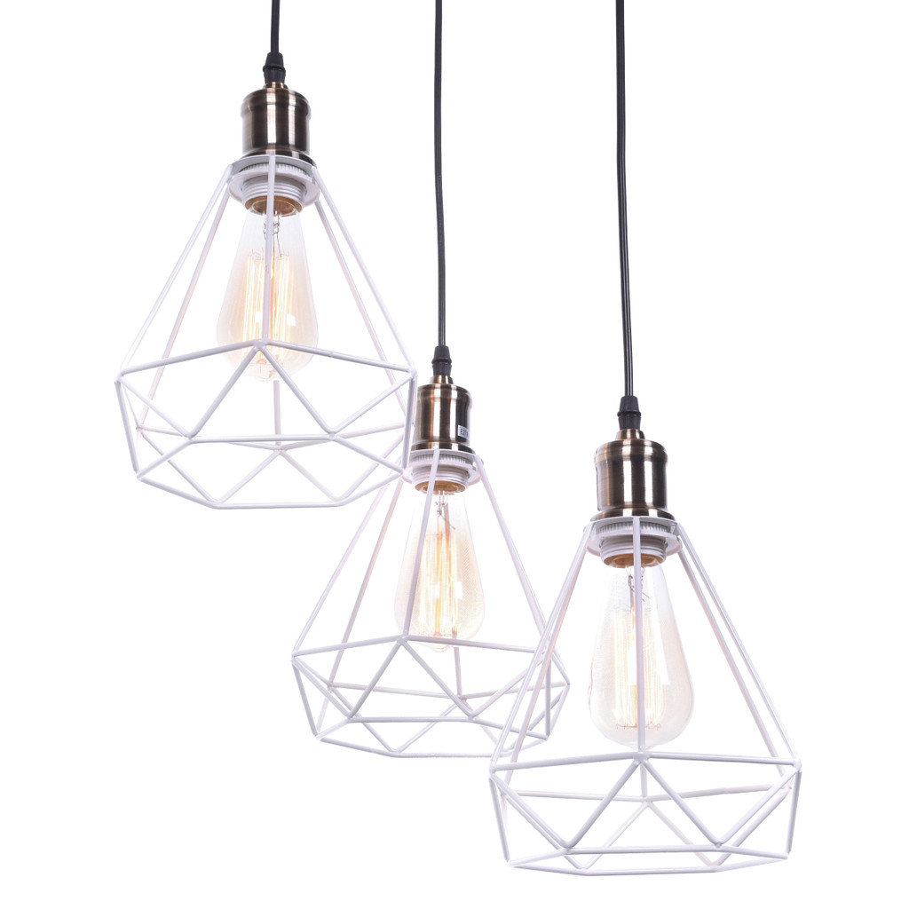 Designerska potrójna lampa wisząca COBI w kolorze białym. Klosze w kształcie diamentów wykonane są z metalowego drutu. Idealnie nadaje się do jadalni czy kuchni oraz do pomieszczeń w stylu nowoczesnym, minimalistycznym czy skandynawskim.