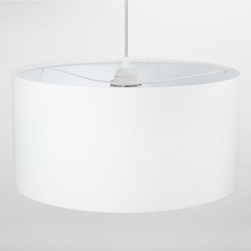 Biała lampa wisząca w kształcie walca z welurowym kloszem LILIA