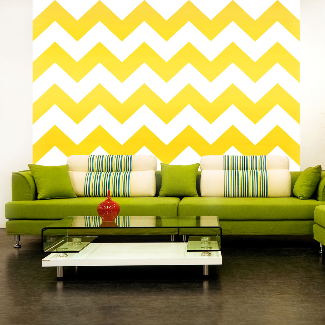 Awangardowa i designerska ozdobna biało-żółta tapeta w zygzaki. Wzór zygzak w żółtym kolorze to nasz wyjątkowy projekt graficzny, który wspaniale rozjaśni twoje domowe wnętrza.