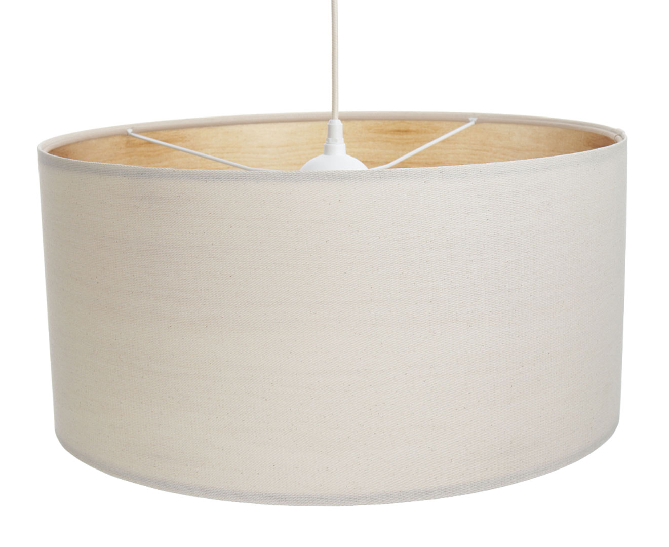 Boho lampa wisząca, kremowy abażur o lnianej strukturze z efektem drewna wewnątrz - EMA