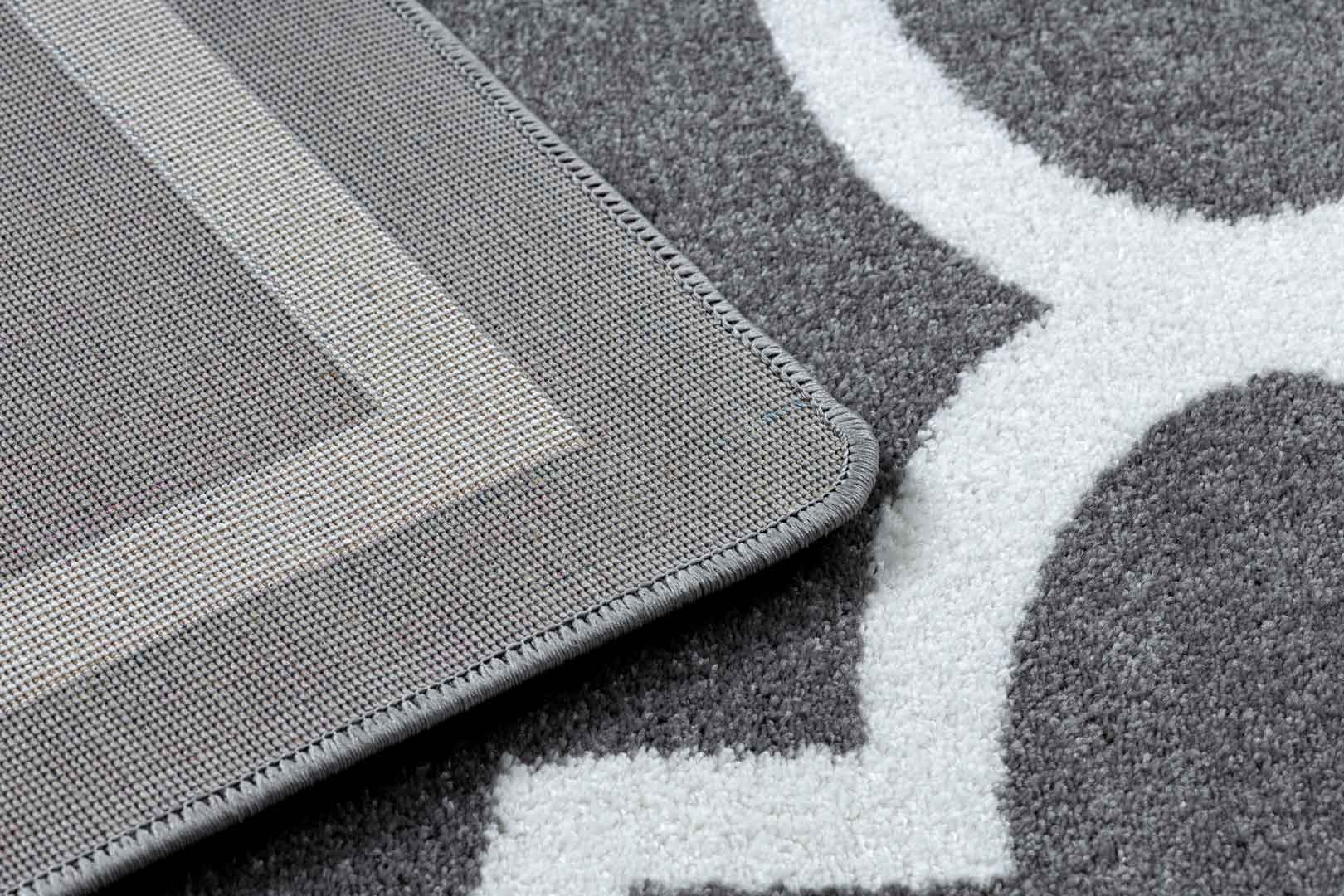 Szaro-biały orientalny dywan w marokańską koniczynę trellis do salonu
