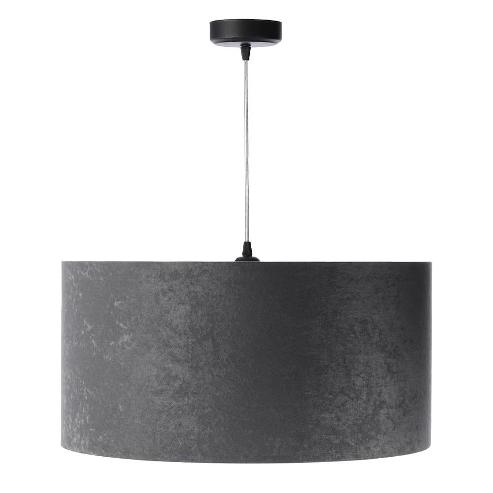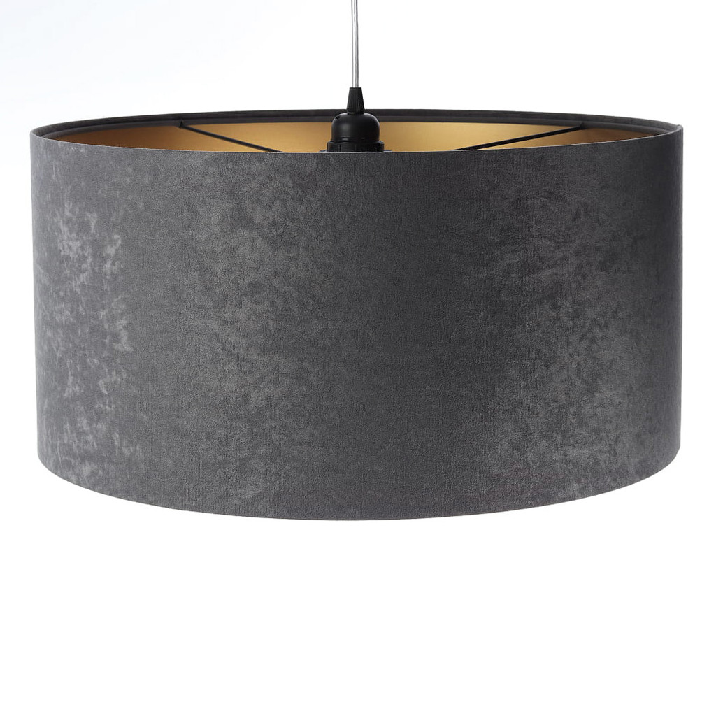 Ciemnoszara lampa wisząca, welurowa, z walcowym abażurem ze srebrnym wnętrzem GRAFIT