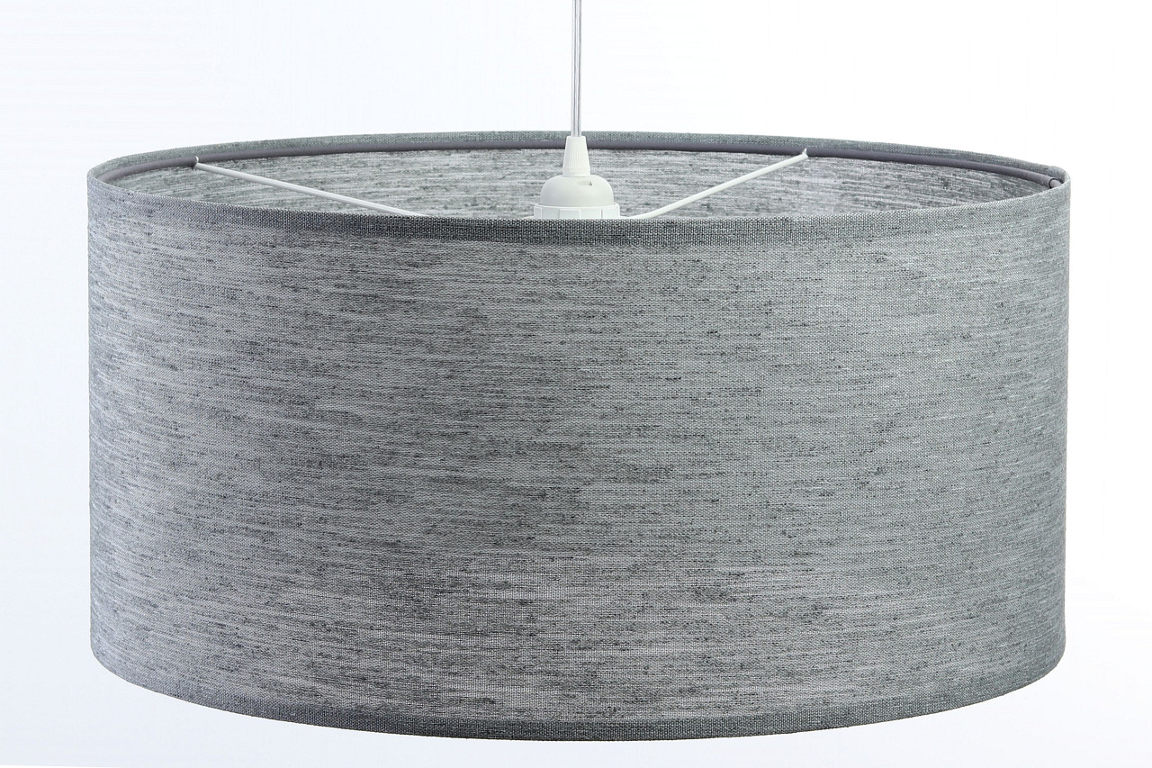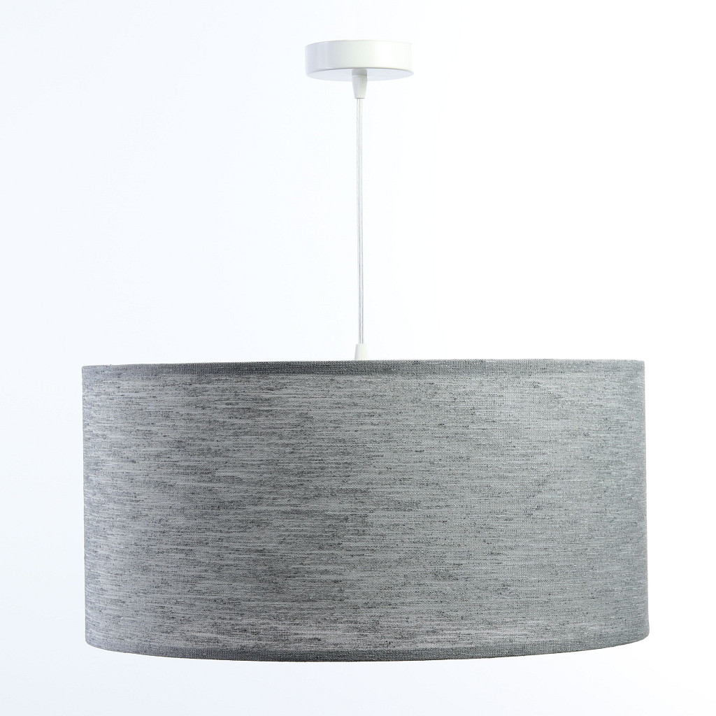Jasnoszara lampa wisząca ze strukturalnej tkaniny o naturalnym wyglądzie z walcowym abażurem MELVIN