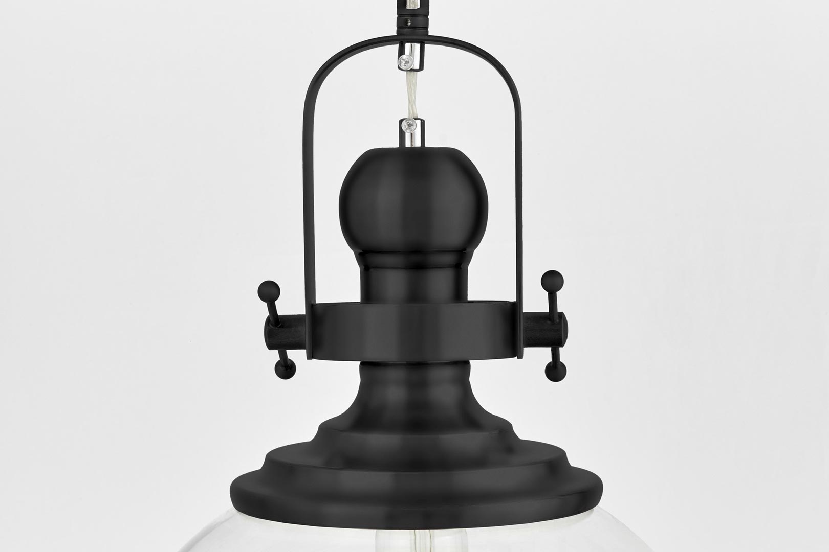 Czarna lampa wisząca loft, industrialna, loftowa, metalowa, szklany klosz kopuła - FALCO
