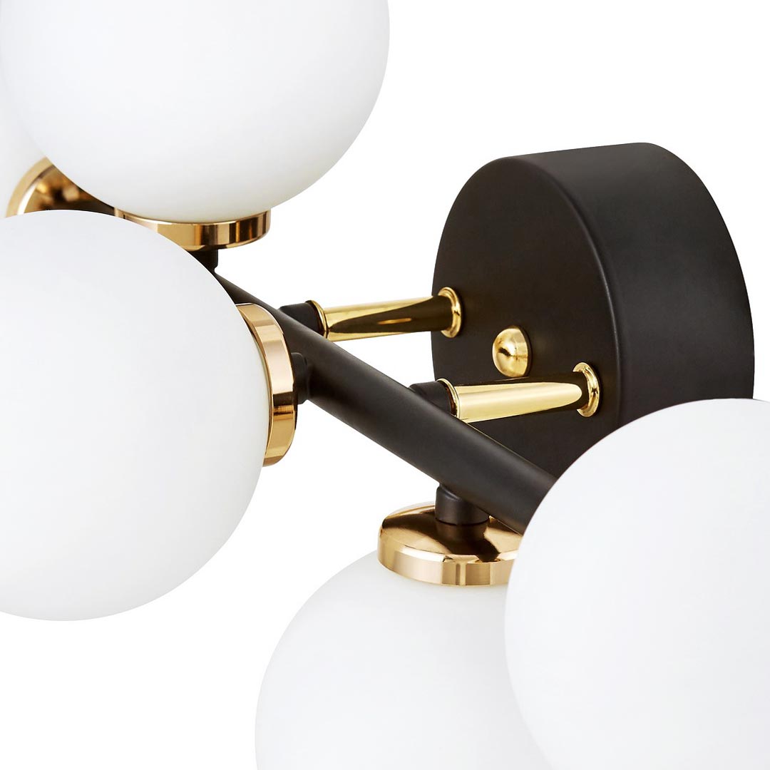 Czarno-złota lampa ścienna z białymi kloszami w kształcie kuli, nowoczesny kinkiet MARSIADA
