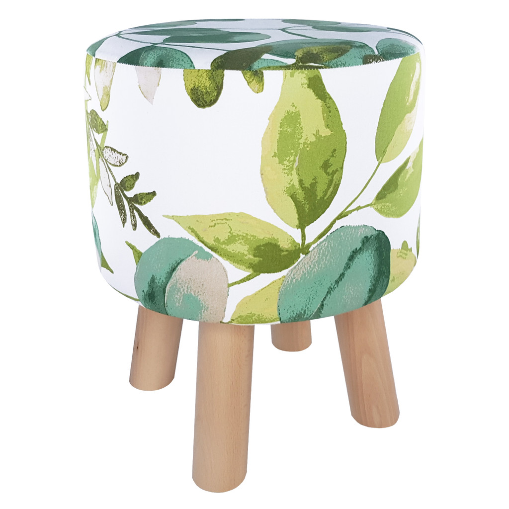 Botaniczny puf, stołek w bardzo modne, akwarelowe liście. Ten ozdobny dodatek wprowadzi do każdego mieszkania artystyczny akcent na miarę dzisiejszych potrzeb - połączy piękne z pożytecznym. Miękkie, wygodne siedzisko spełni swoją rolę w oczach każdego krytyka.