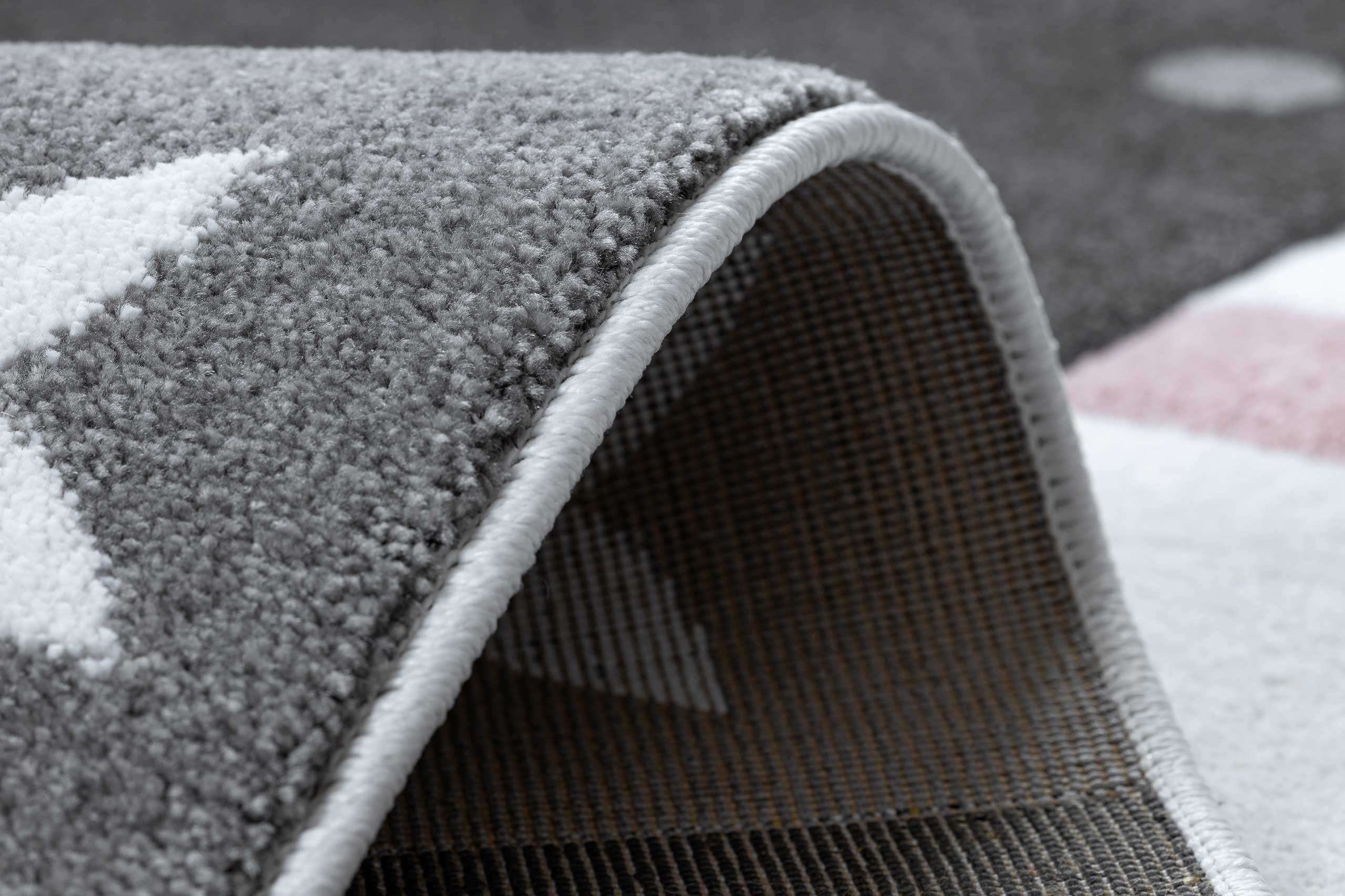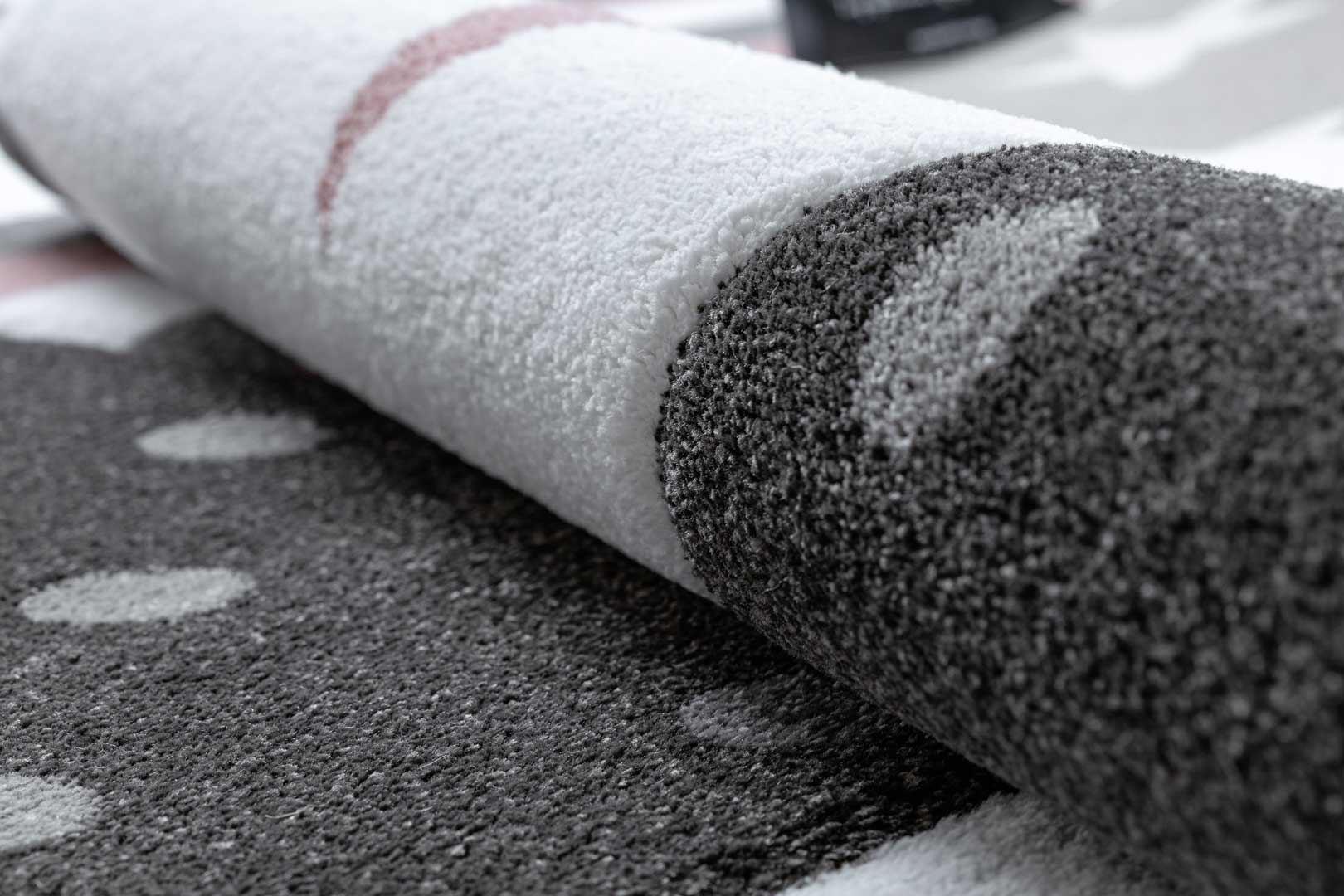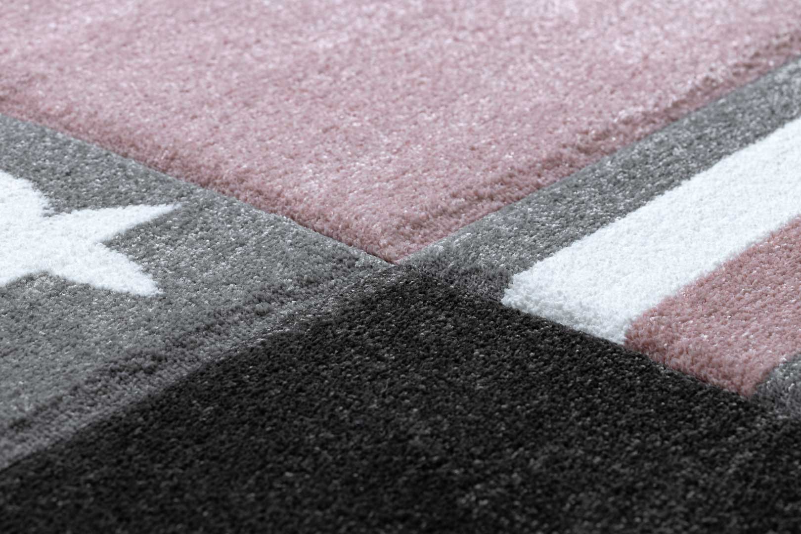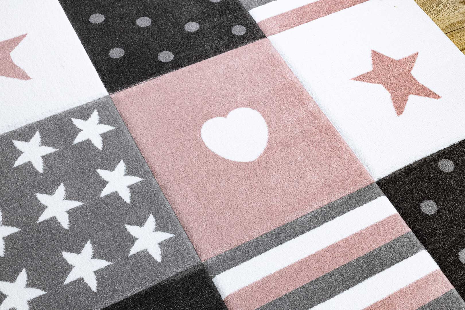 Dywan patchworkowy dla dziewczynki w serduszka, gwiazdki, kropki PETIT TEENY różowy, szary, biały, pastelowy