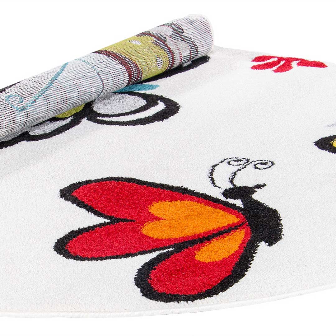 Polipropylen i włókna heat set frise wykorzystane do produkcji dywanu są bardzo miękkie, dzięki czemu zapewniają bezpieczeństwo i amortyzowanie wszystkich niepowodzeń podczas nauki stawiania pierwszych kroków i zabawy, a do tego wyjątkowo łatwo można go wyczyścić z wszelkich zabrudzeń. Ten dekoracyjny i praktyczny akcent sprawi, że najmłodsi przeniosą się z motylkami w głąb dziecięcej wyobraźni!