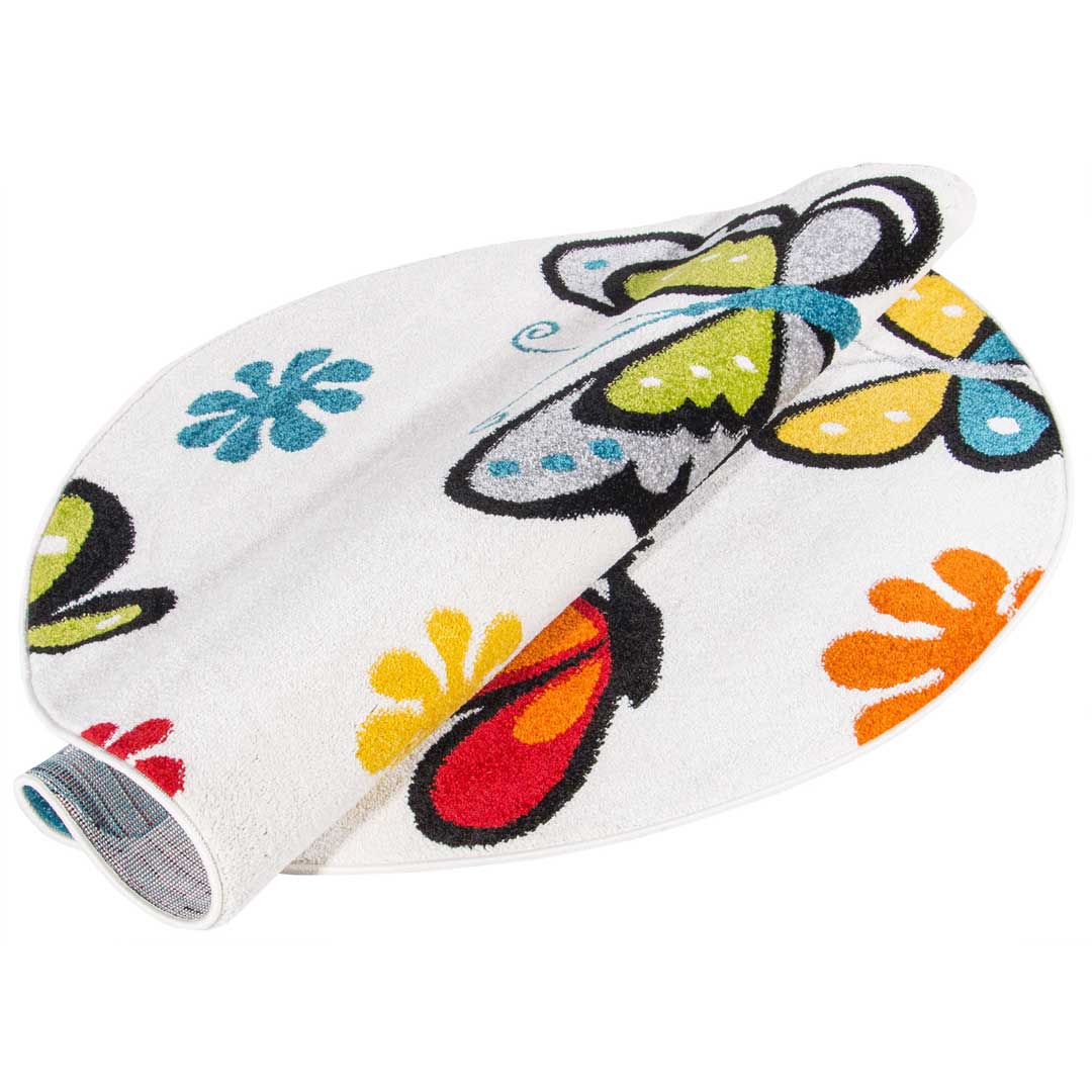 Dekoracyjny, okrągły dywan w kolorowe motylki i kwiatki na jasnym tle Butterfly