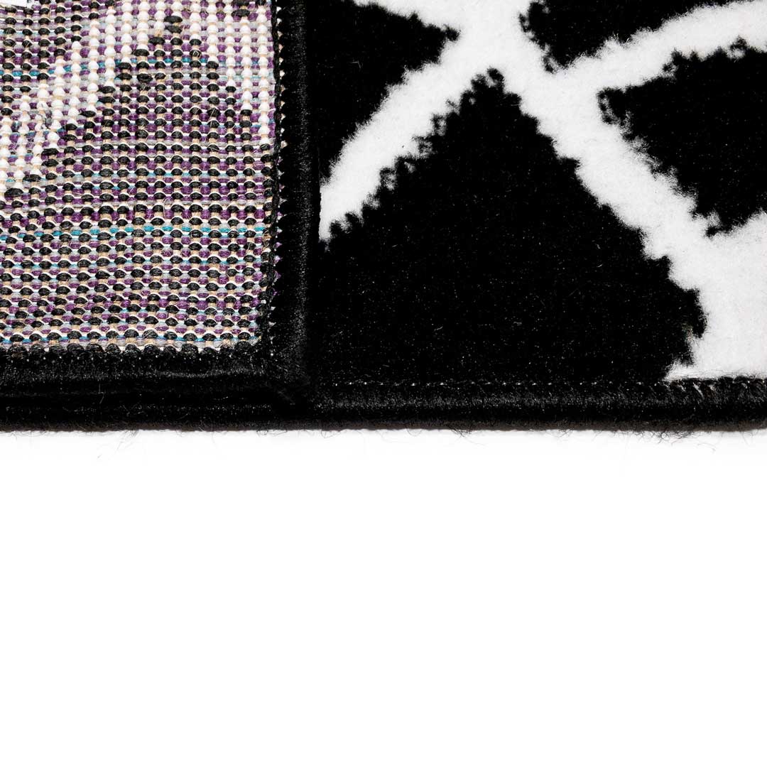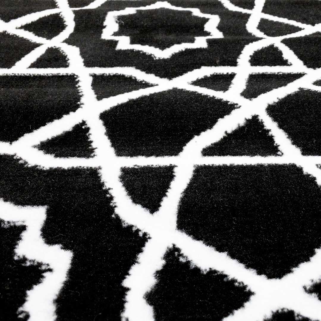 Designerski, czarny dywan do salonu w biały, fantazyjny wzór, geometryczny obrys Almas 42