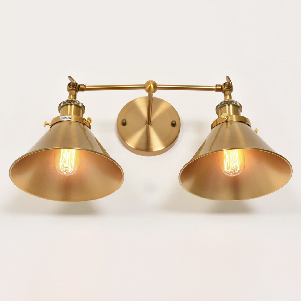 Designerski podwójny kinkiet w kolorze złota GUBI DUO stożkowe klosze loftowe