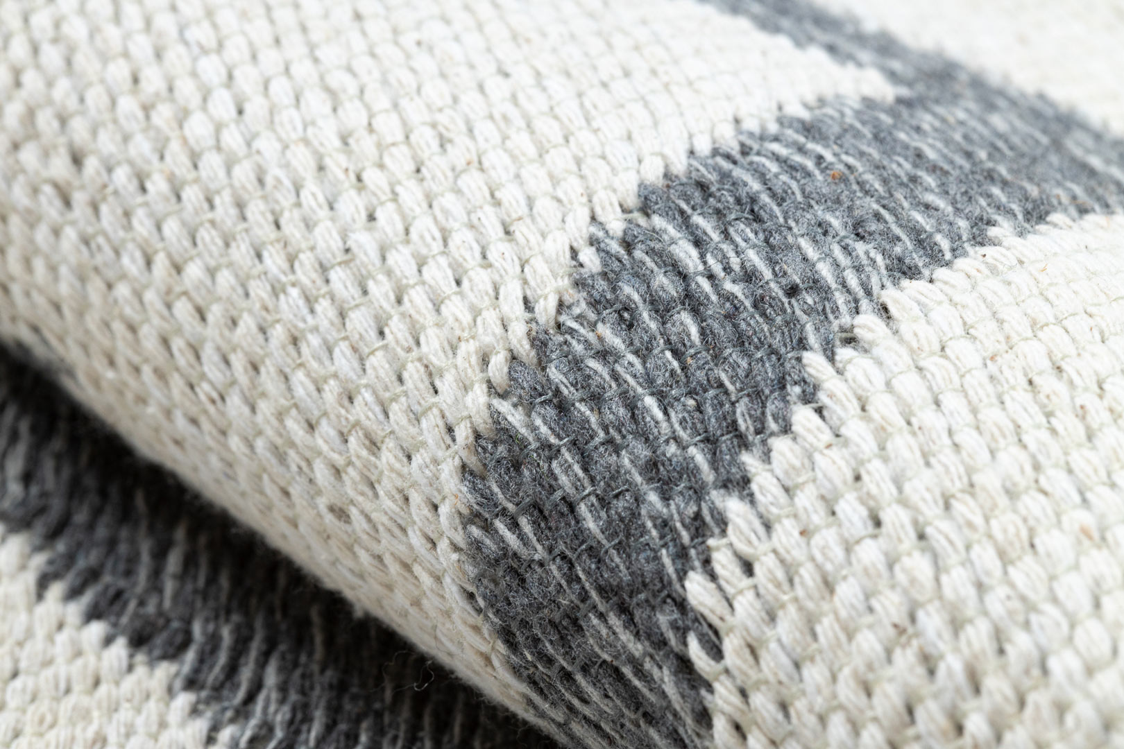 Dywan został wykonany w 100% z bawełny pochodzącej z recyklingu, dzięki czemu jest rozwiązaniem przyjaznym dla środowiska. Płasko tkana, pętelkowa struktura sprawia, że dywan jest lekki, trwały i bardzo łatwy w codziennym utrzymaniu czystości.