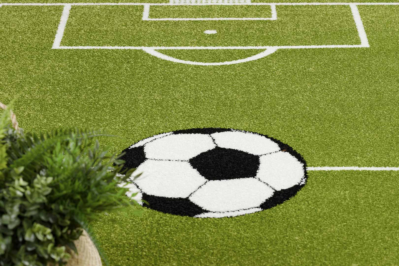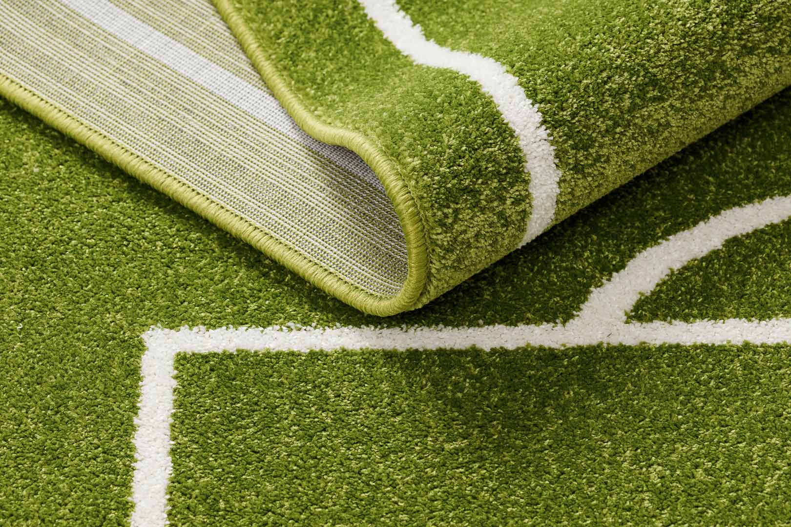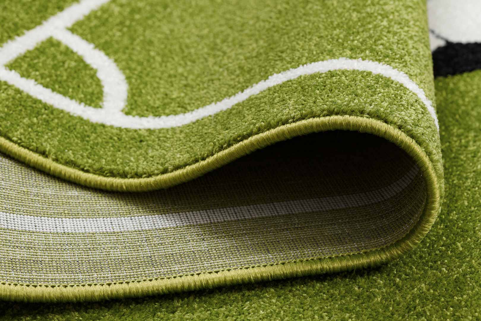 Czy masz w domu młodszych lub starszych fanów football'u? Ten dywan ukazujący boisko do gry w piłkę nożną stworzy niesamowitą przestrzeń do zabawy dla przyszłych piłkarzy i piłkarek! Dzięki polipropylenowi z dodatkiem miękkich i sprężystych włókien heat set frise, dywan nie ugniecie się i co ważne w przypadku dzieci: jest bardzo łatwy w czyszczeniu.