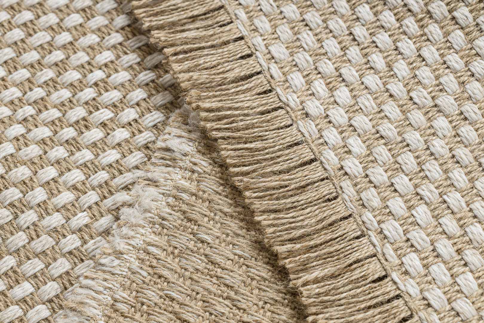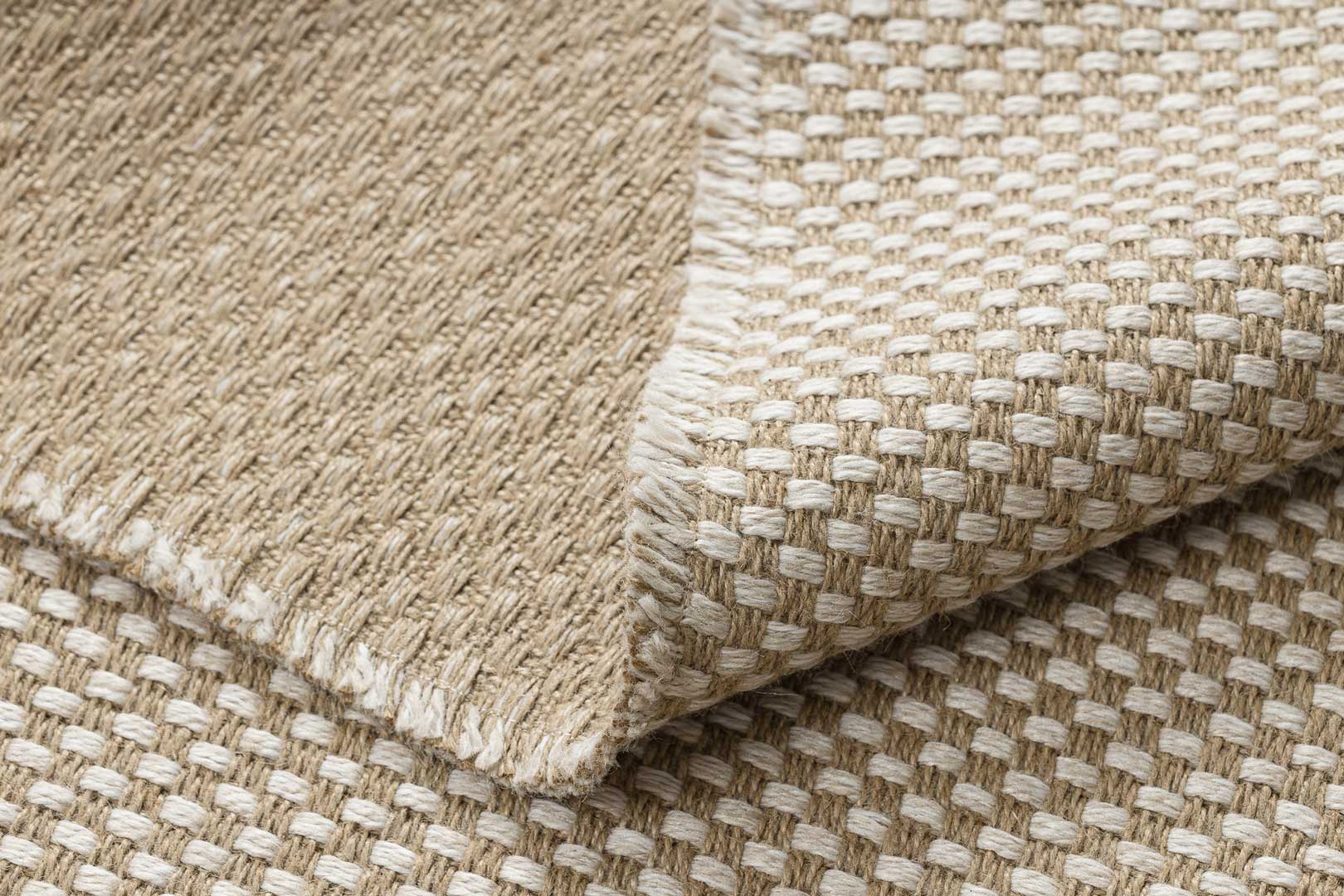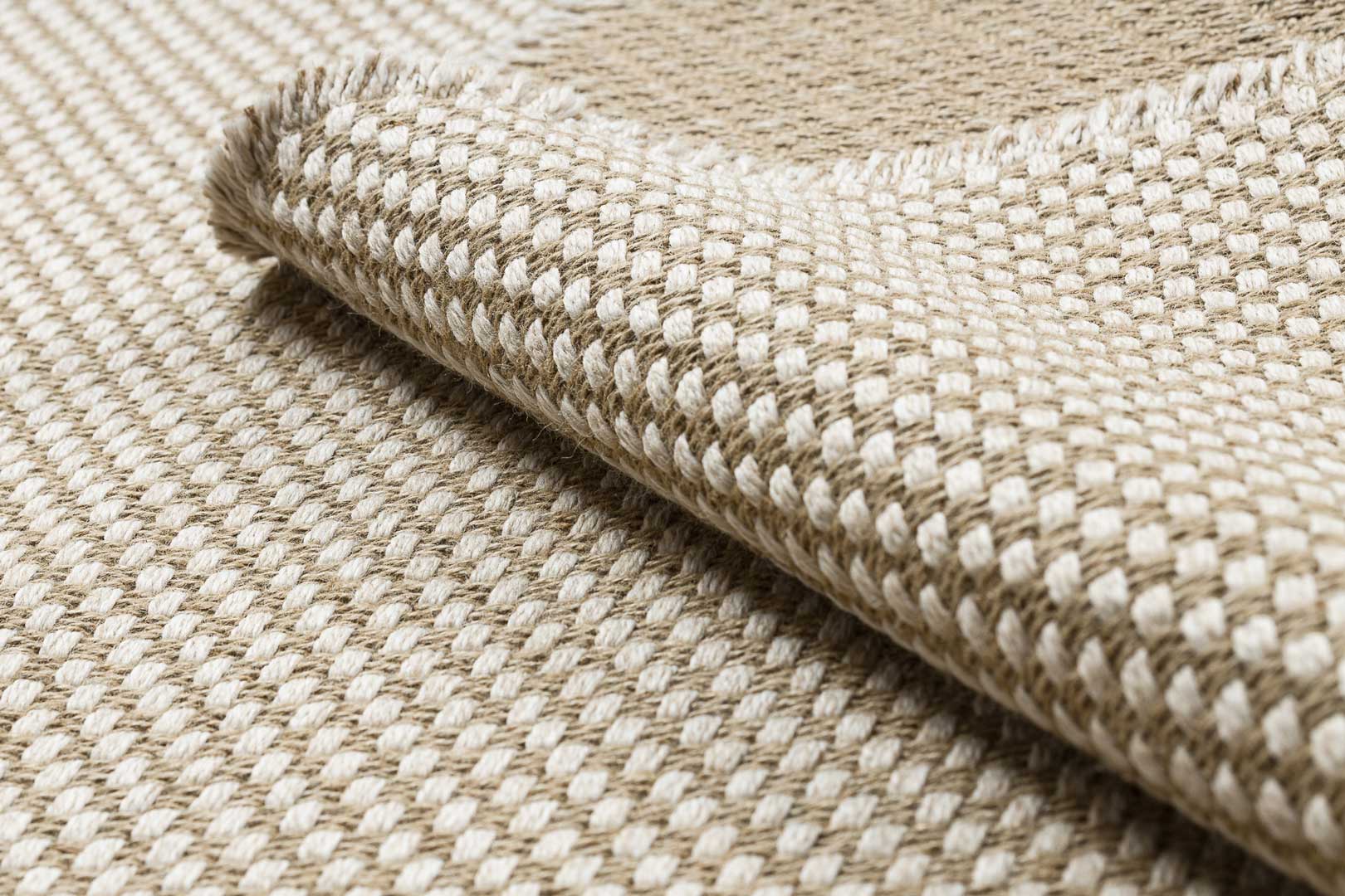 Dywan JUTE w szachownicę, w kolorze beżowo-kremowym to doskonały wybór do wnętrz, które potrzebują eleganckiego, a jednocześnie naturalnego akcentu. Wykonany z wysokiej jakości naturalnej juty, charakteryzuje się wyjątkową trwałością i odpornością na zużycie, a jednocześnie wprowadza ciepłą, przytulną atmosferę do każdego pomieszczenia.
