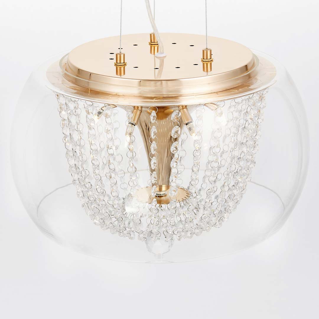 Elegancka lampa wisząca z przezroczystym, szklanym kloszem w złotej oprawie, z kryształkami DISPOSA GOLD