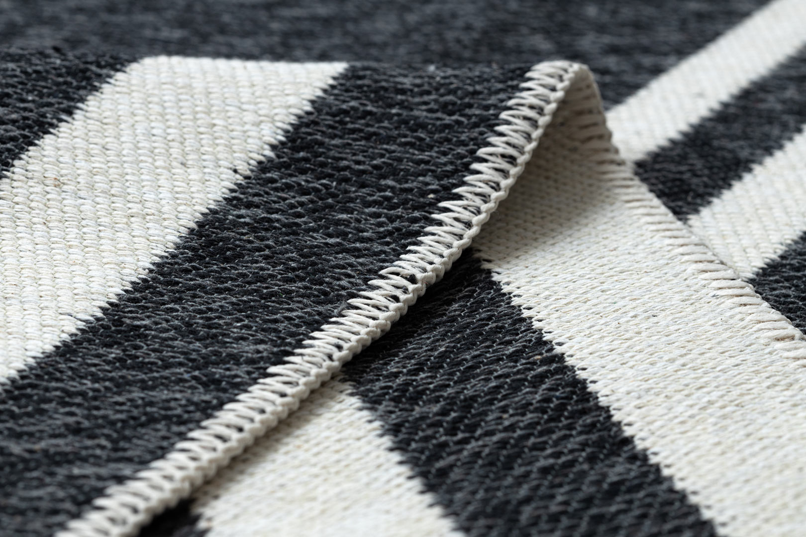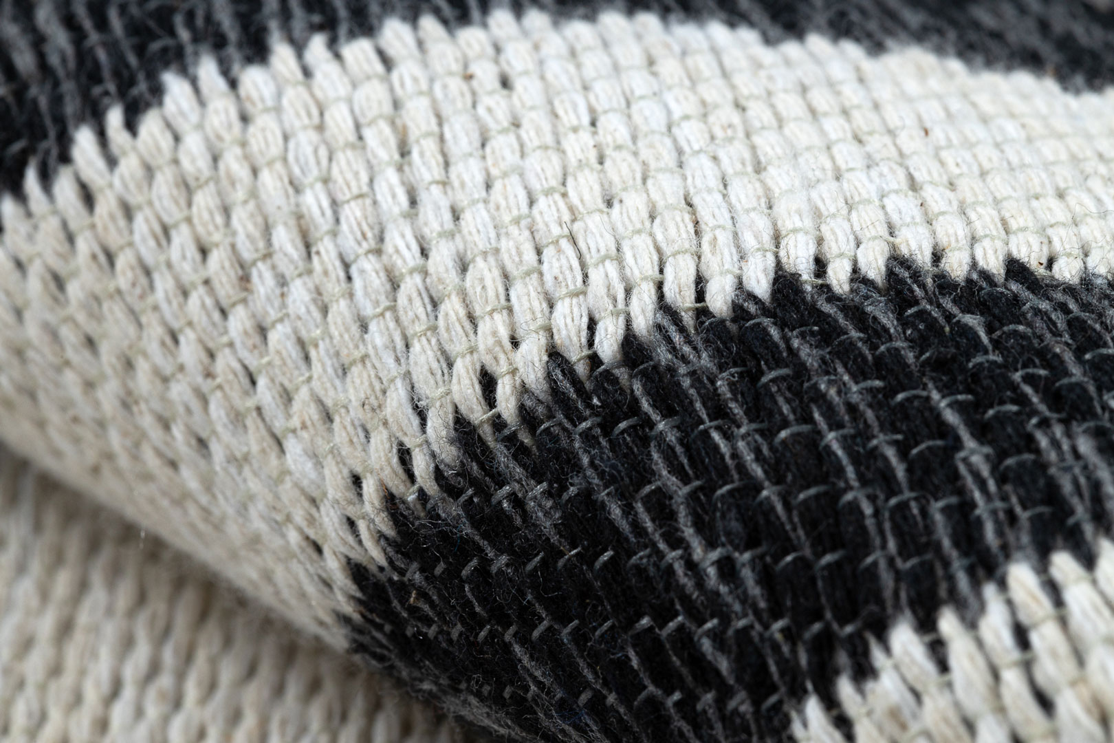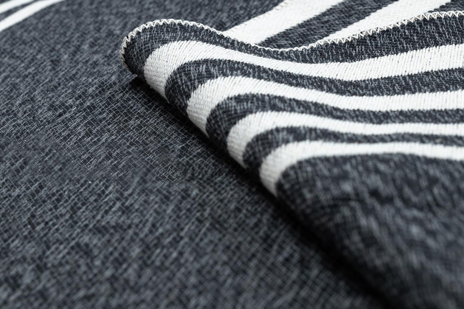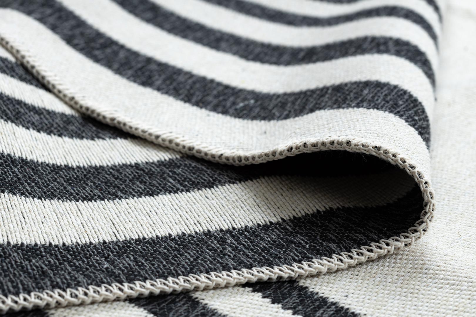 Dywan został wykonany w 100% z bawełny pochodzącej z recyklingu, dzięki czemu jest rozwiązaniem przyjaznym dla środowiska. Płasko tkana, pętelkowa struktura sprawia, że dywan jest lekki, trwały i bardzo łatwy w codziennym utrzymaniu czystości.