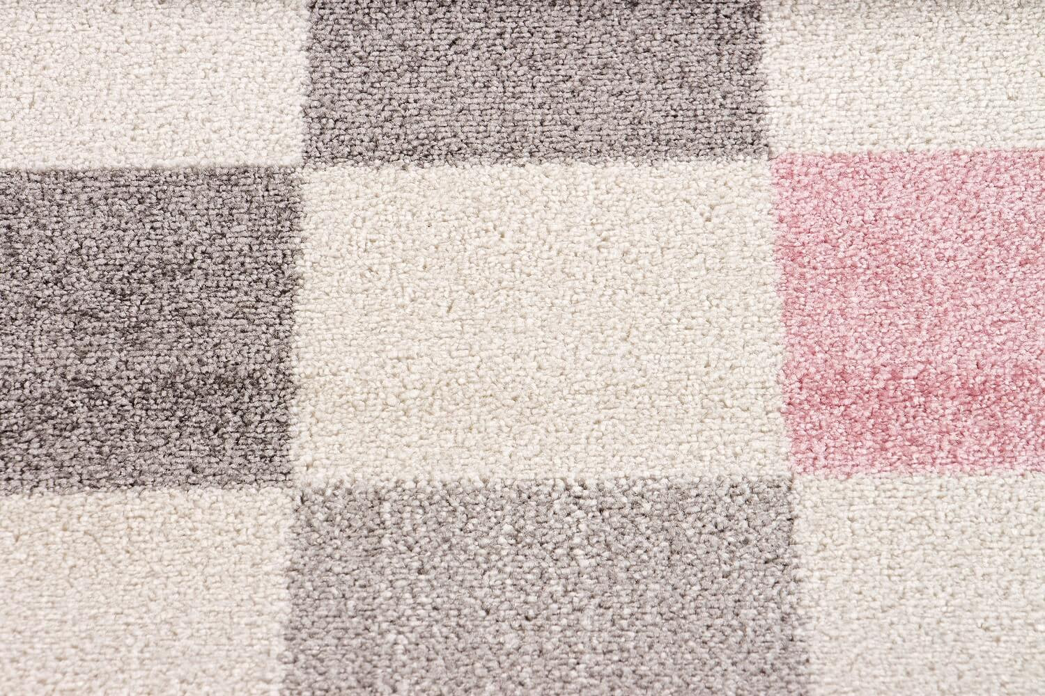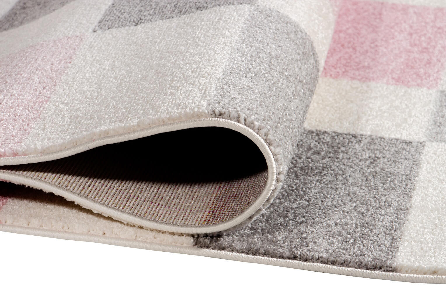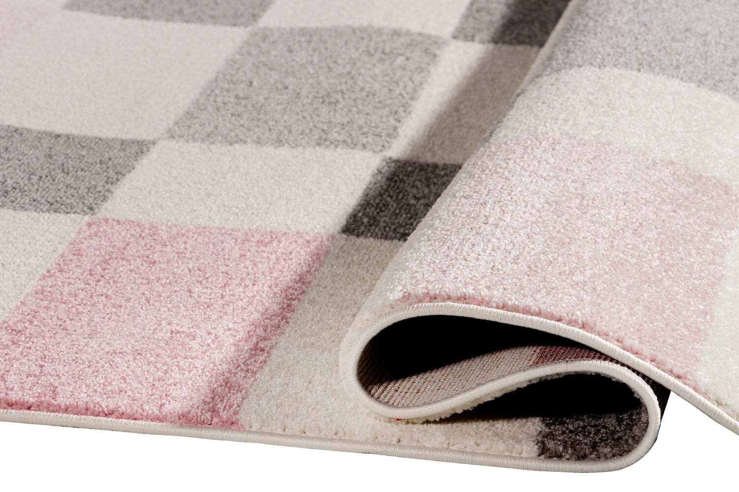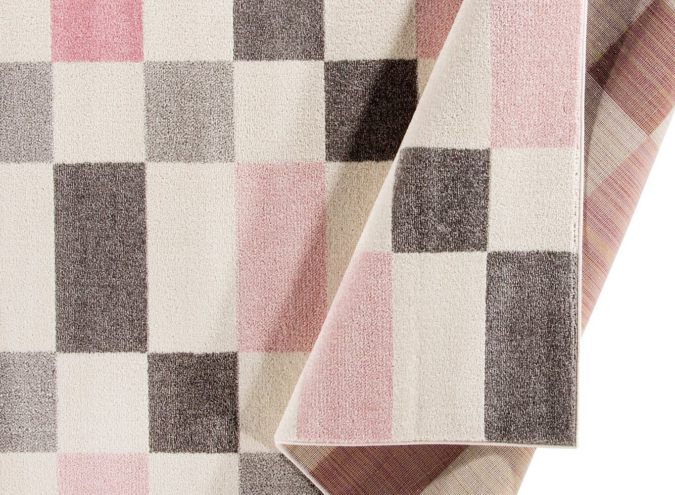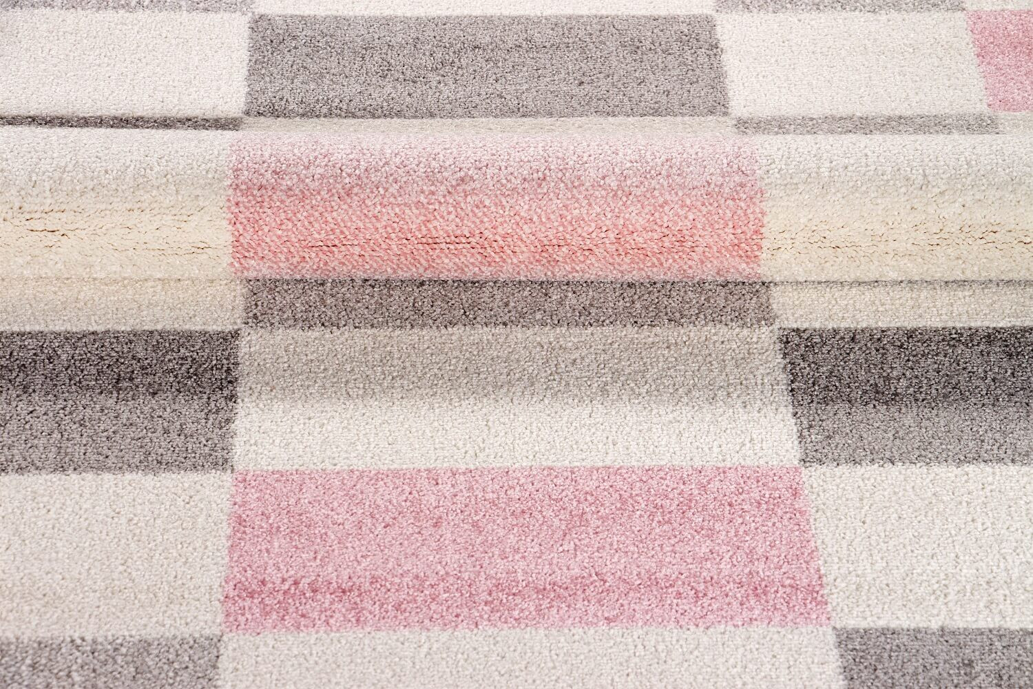 Elegancki dywan w szare i różowe kwadraty, prostokąty na kremowym tle Pink Cubes dla dziewczynki
