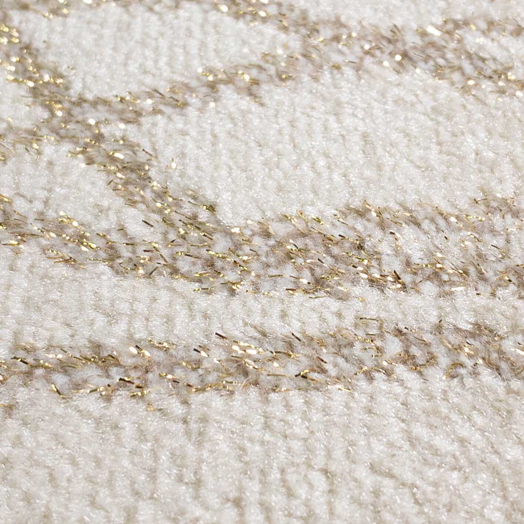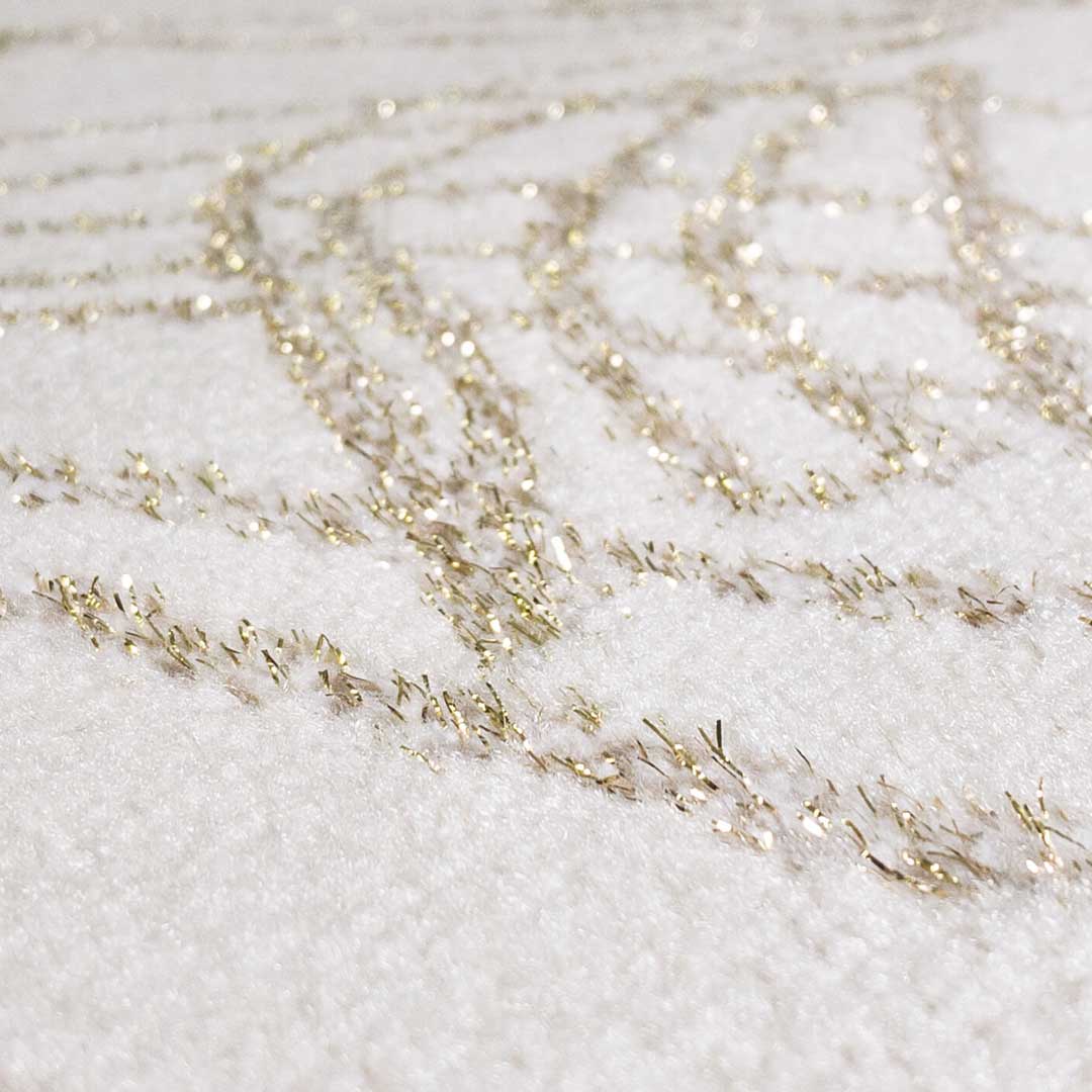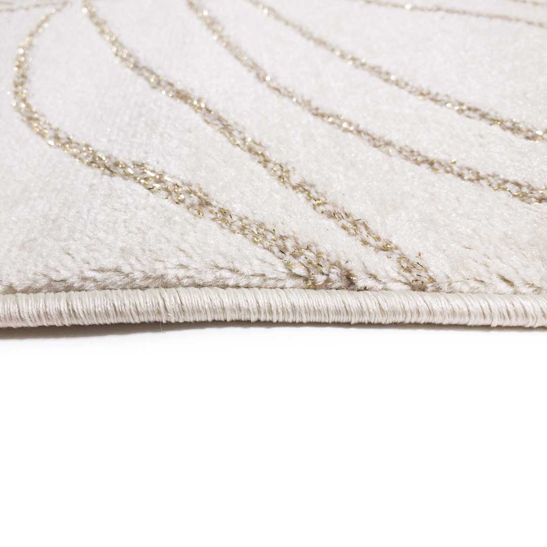 Ten piękny, jasny dywan z liściastym wzorem będzie idealnym akcesorium dla pomieszczeń potrzebujących rozjaśnienia. Polipropylen, z którego został zrobiony zapewnia ogromny komfort w użytkowaniu i utrzymaniu w czystości, a dodatek w postaci metalizowanej przędzy lurex w kolorze złota sprawia, że staje się on bardzo eleganckim urozmaiceniem do minimalistycznego biura lub nowoczesnego pokoju dziennego.