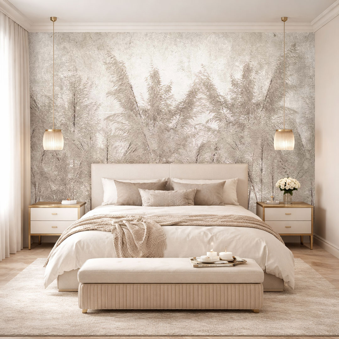 Motyw trawy pampasowej doskonale wpisuje się w styl boho, skandynawski, japandi oraz nowoczesny glamour. Neutralna kolorystyka sprawia, że fototapeta nie dominuje wnętrza, lecz pięknie je dopełnia - szczególnie w sypialni, salonie, gabinecie czy eleganckiej strefie relaksu.