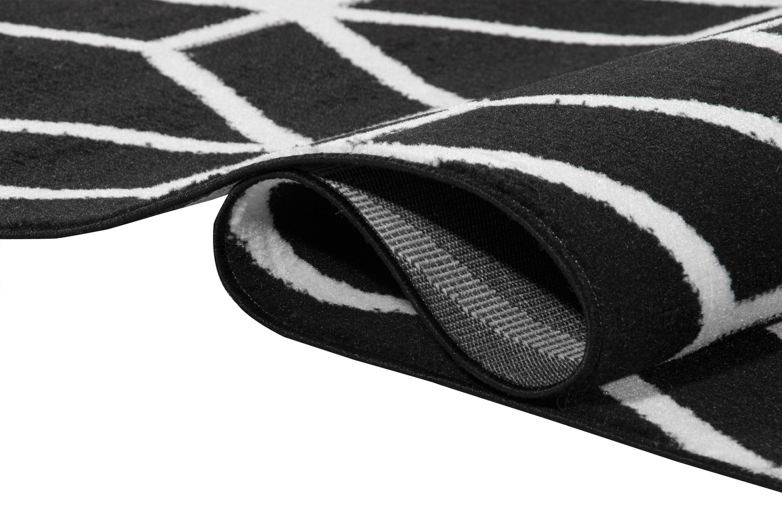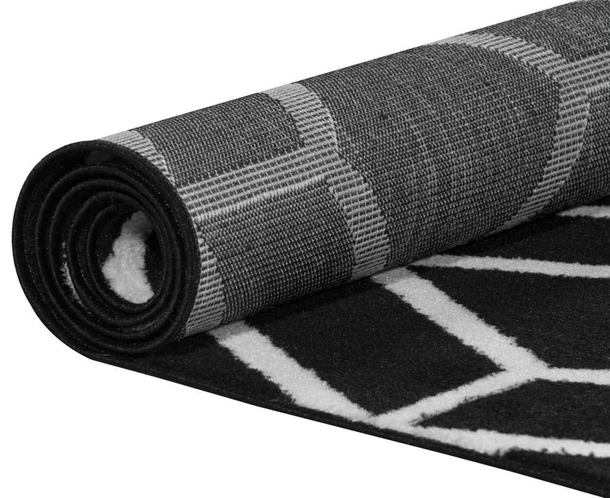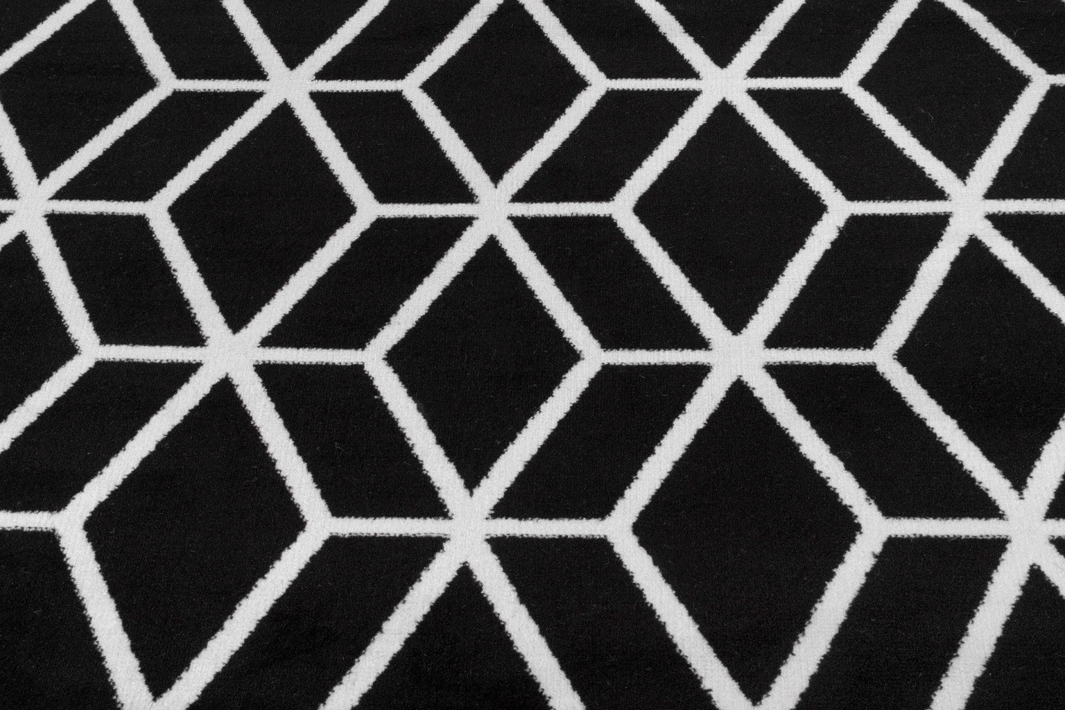Geometryczny czarny dywan Almas 13 w białą linię, siatkę, romby nowoczesny styl
