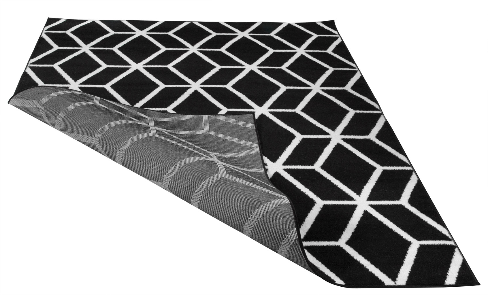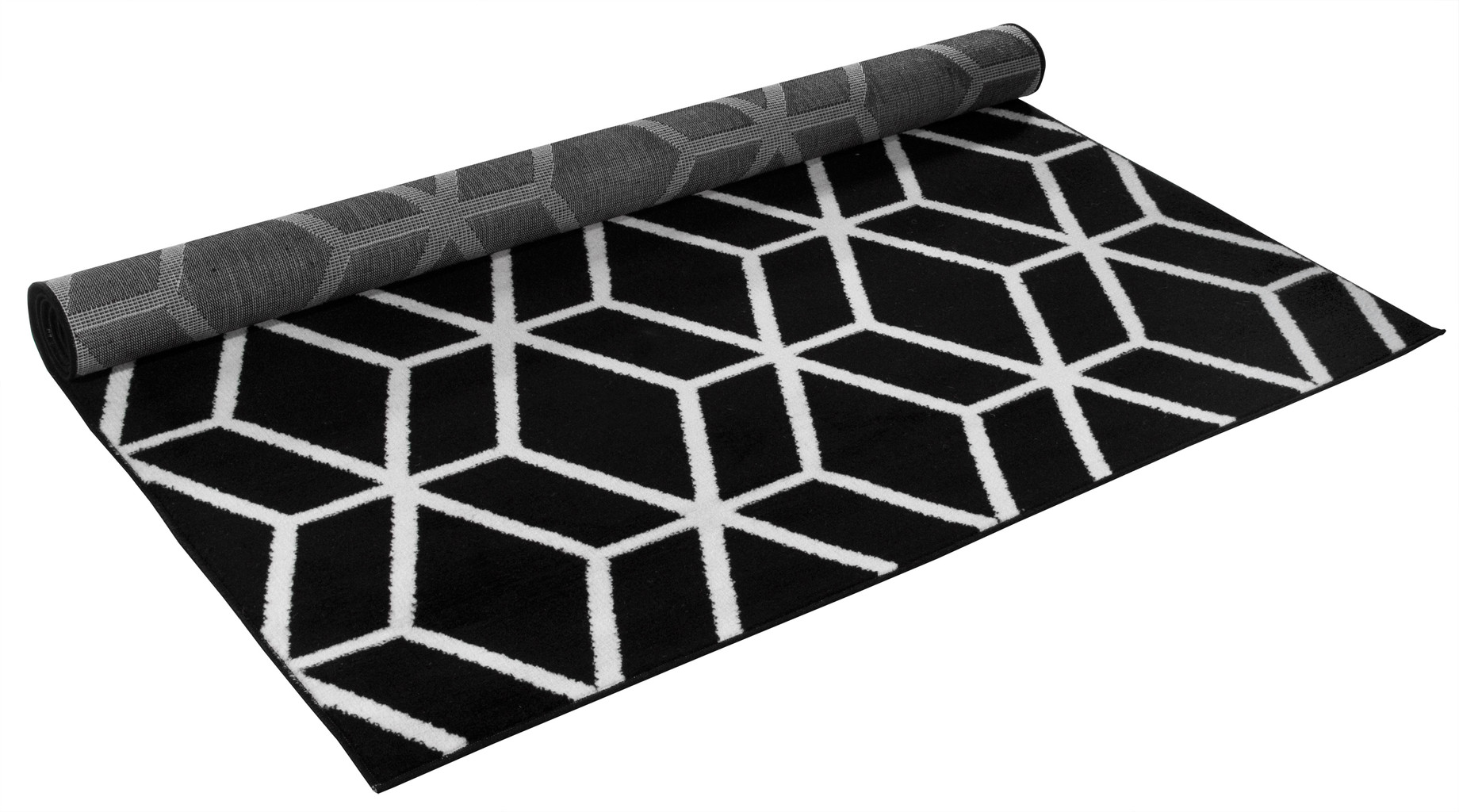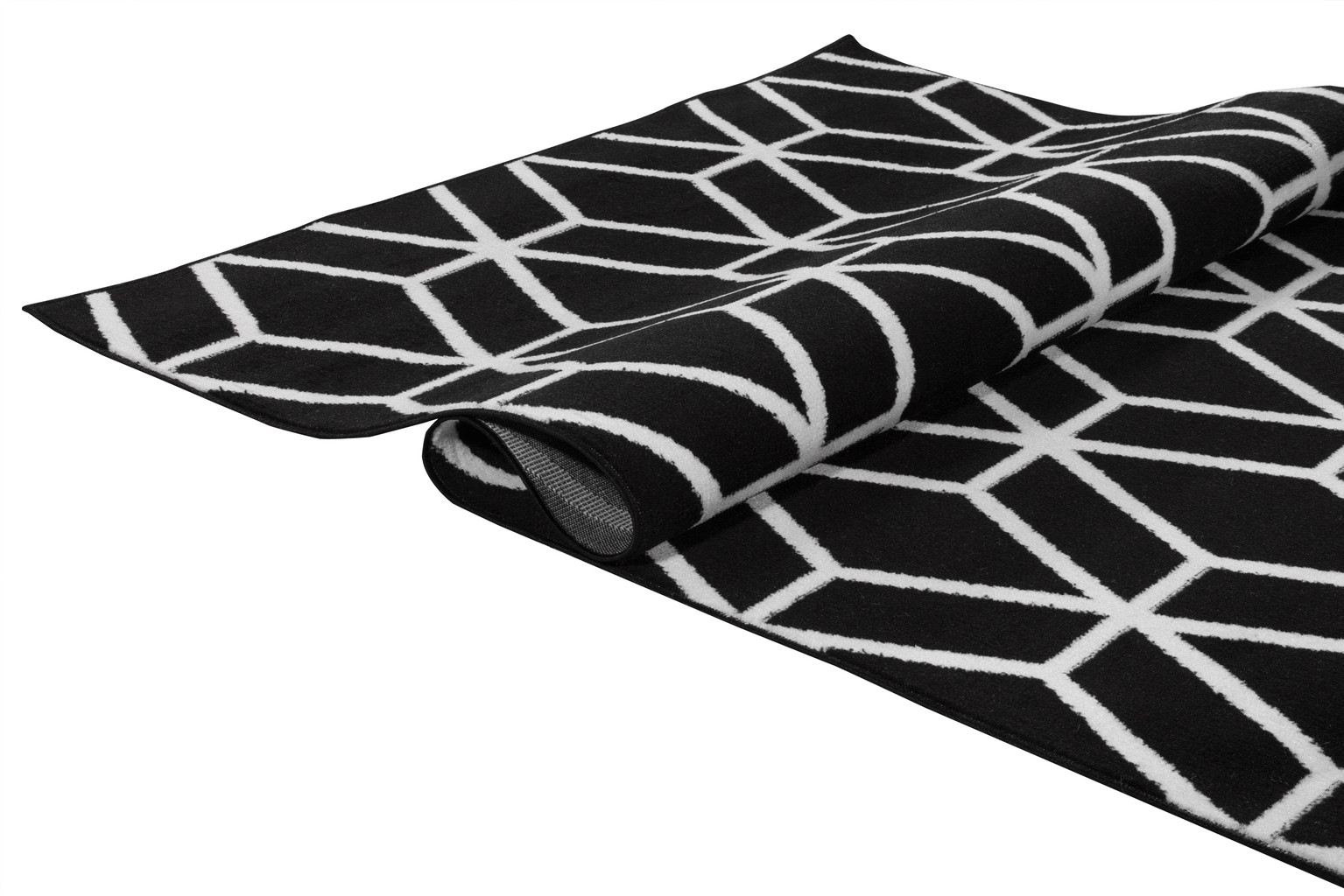 Geometryczny czarny dywan Almas 13 w białą linię, siatkę, romby nowoczesny styl