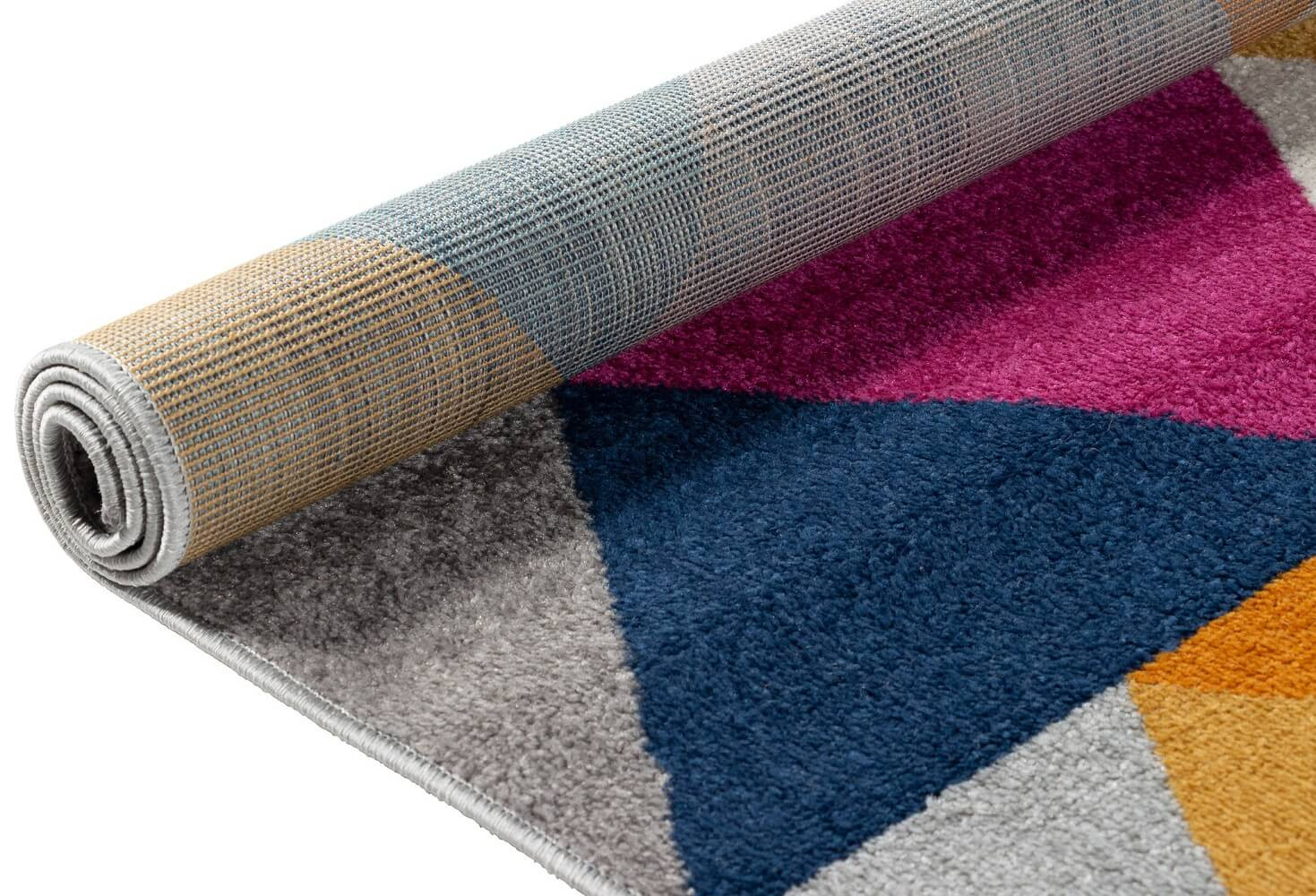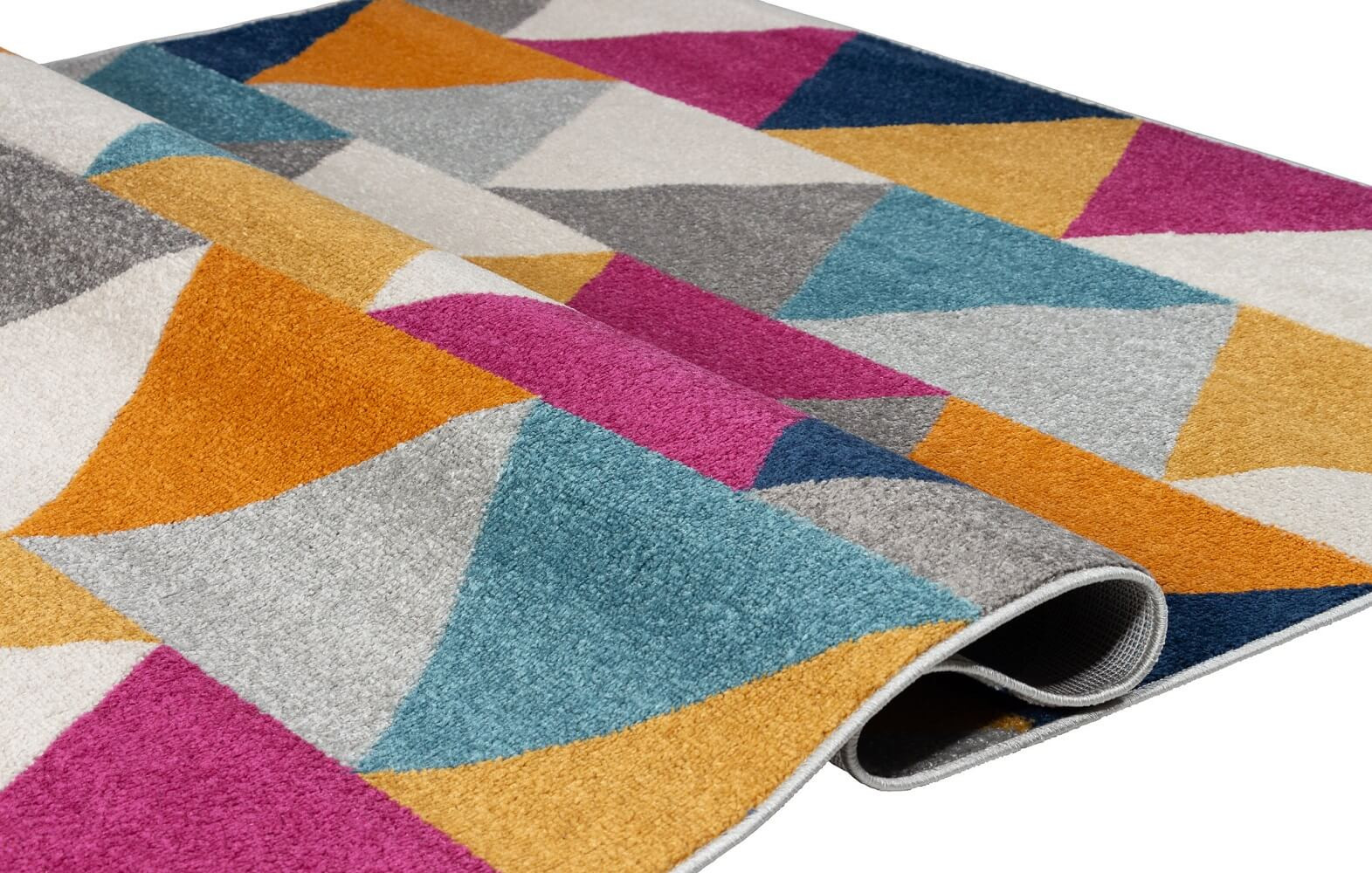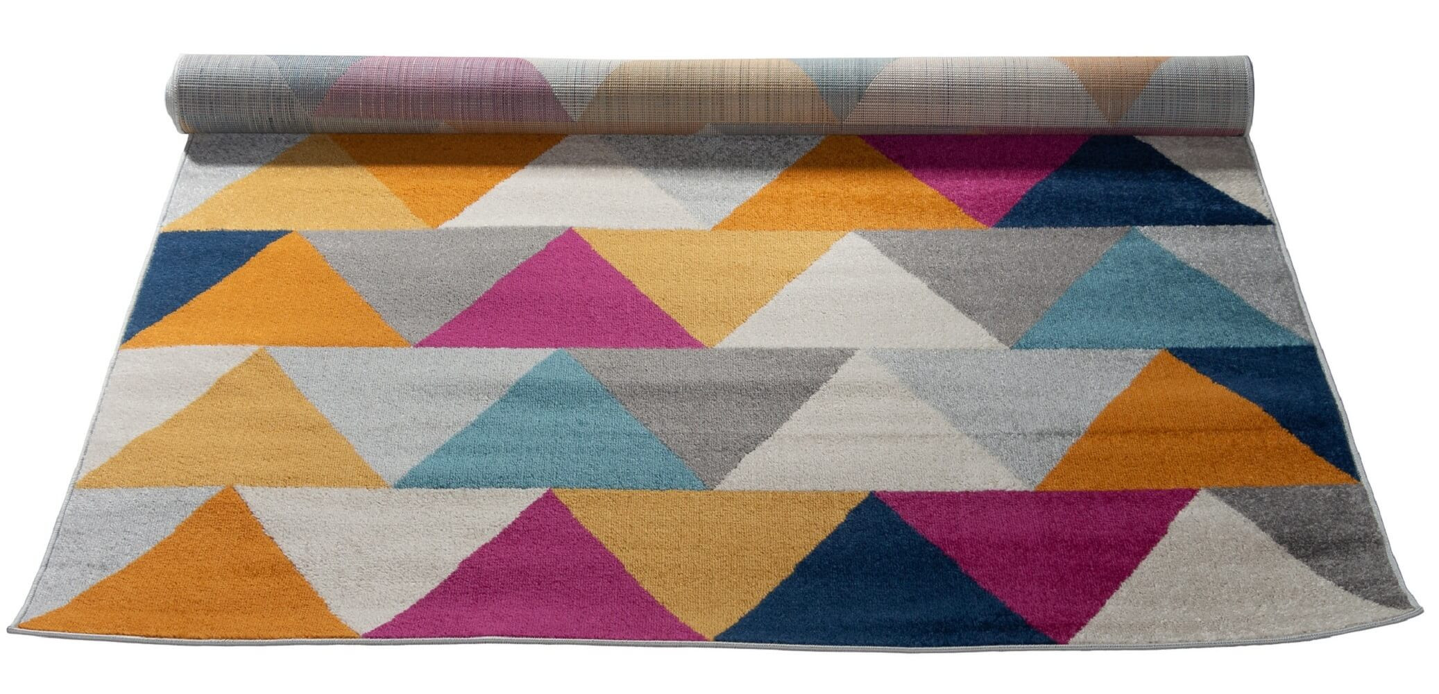 Kolorowy, energetyczny wzór to idealny pomysł na dywan młodzieżowy. Ten model z nowoczesną, geometryczną kompozycją złożoną z trójkątów jest tego najlepszym przykładem. Materiał, z którego wykonany jest dywan nie wchłania wilgoci, nie odkształca się pod wpływem ciężkich mebli oraz zapewnia ogólny komfort użytkowania przez długi czas!