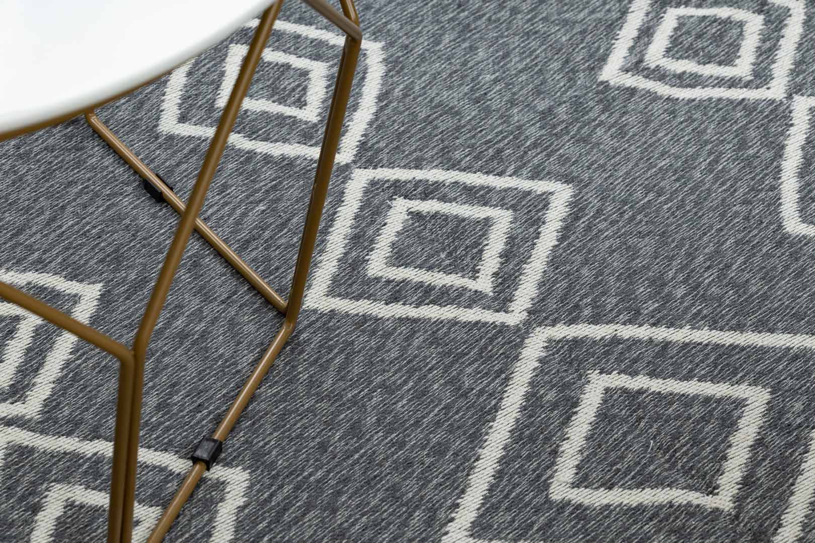 Grafitowo-kremowy dywan TWIN to połączenie nowoczesnego designu, funkcjonalności i ekologicznych materiałów. Minimalistyczny wzór w romby oraz kontrastowe zestawienie antracytu i kremu sprawiają, że dywan świetnie komponuje się zarówno ze skandynawskimi, jak i nowoczesnymi aranżacjami wnętrz. Doskonale sprawdzi się w salonie, sypialni, przedpokoju czy korytarzu, wprowadzając do pomieszczenia przytulny klimat i nowoczesny akcent.