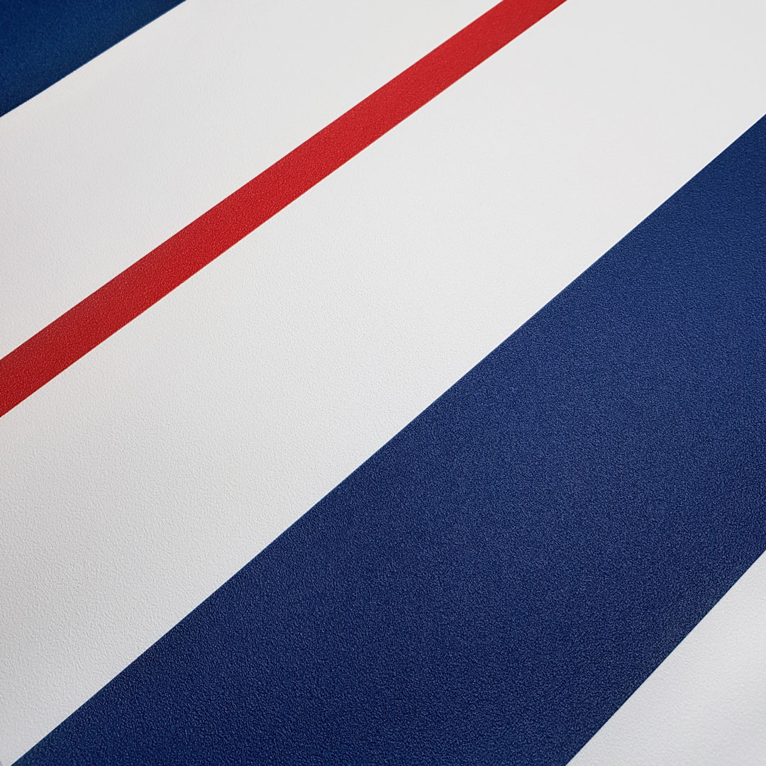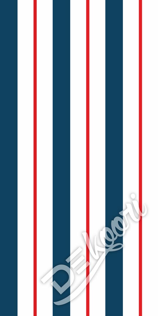 Granatowo-biało-czerwona, marynistyczna tapeta na ścianę w pasy pionowe, dekoracyjna, marynarska