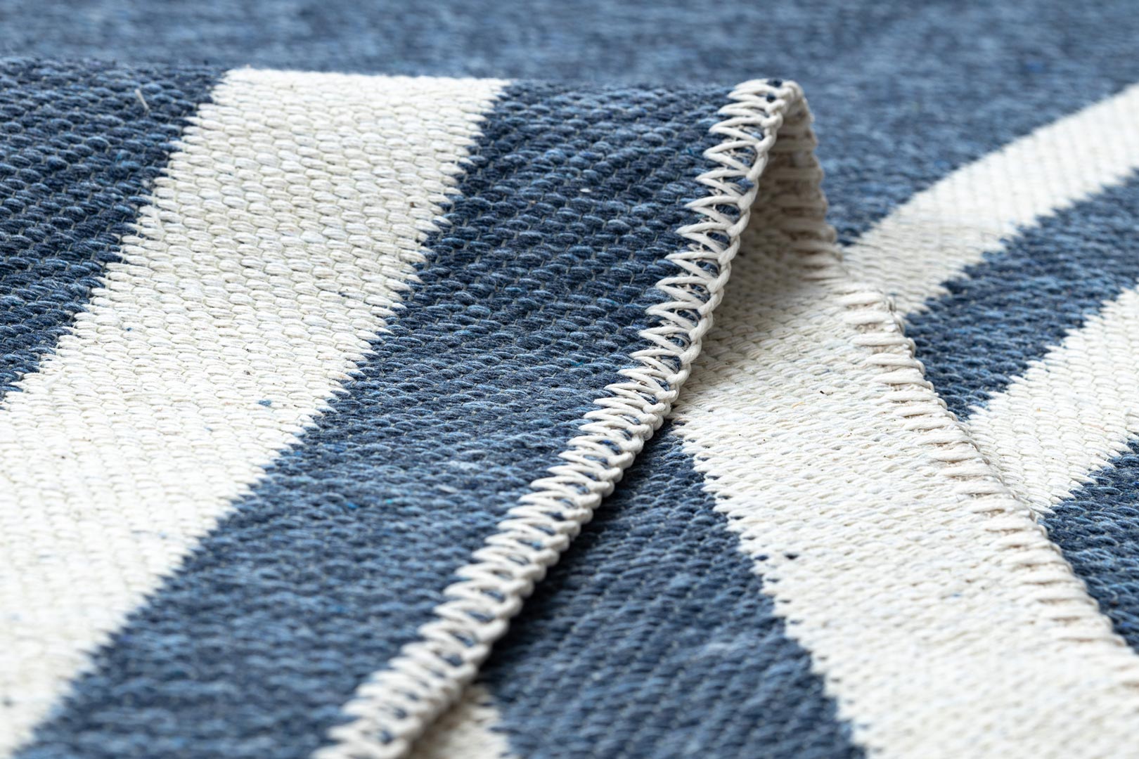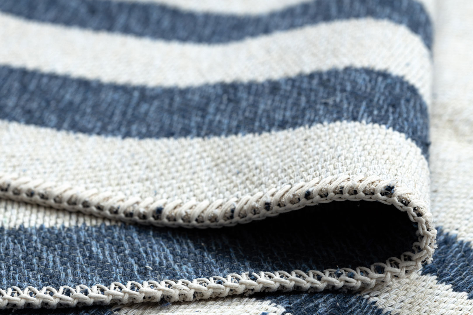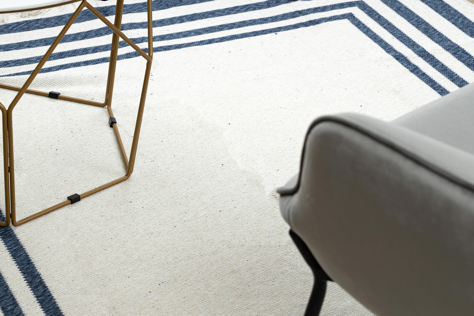Dywan został wykonany w 100% z bawełny pochodzącej z recyklingu, dzięki czemu jest rozwiązaniem przyjaznym dla środowiska. Płasko tkana, pętelkowa struktura sprawia, że dywan jest lekki, trwały i bardzo łatwy w codziennym utrzymaniu czystości.