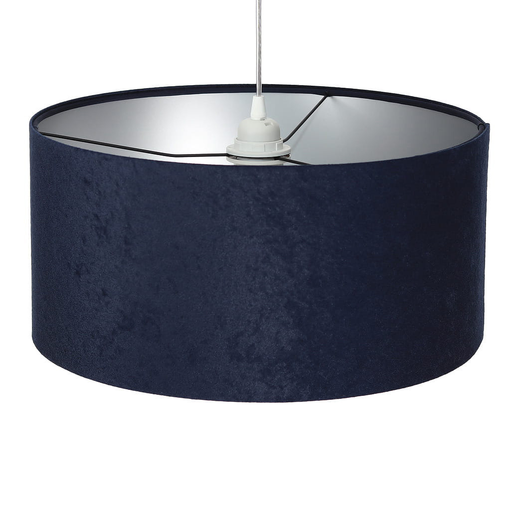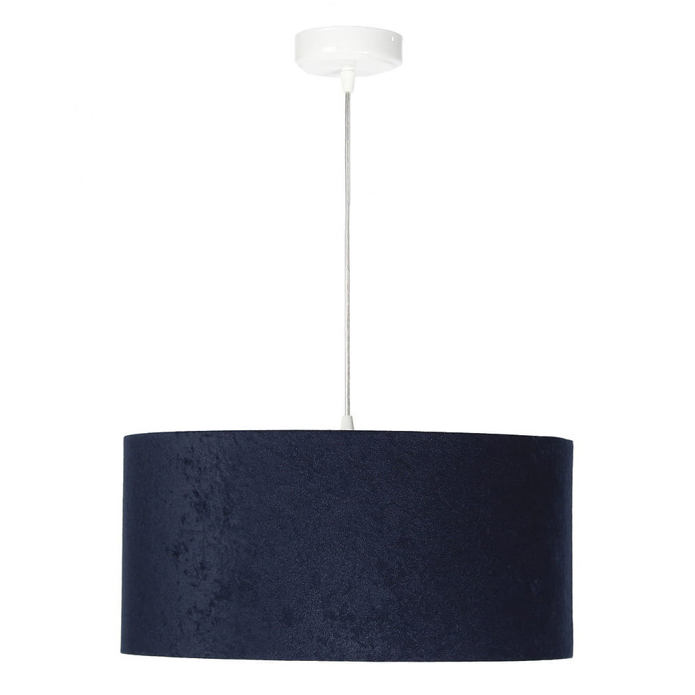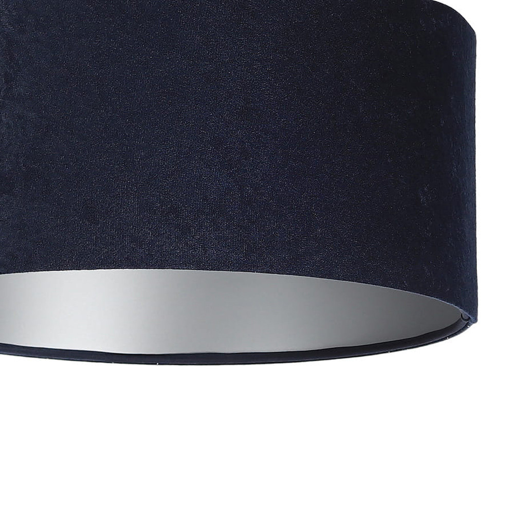 Granatowo-srebrna lampa wisząca z walcowym abażurem z weluru LOBELIA