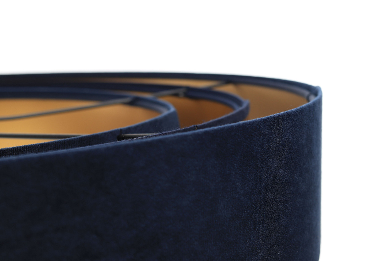 Granatowo-złota lampa wisząca z trzema kloszami z weluru i apli ułożonymi od największego do najmniejszego TRINITI