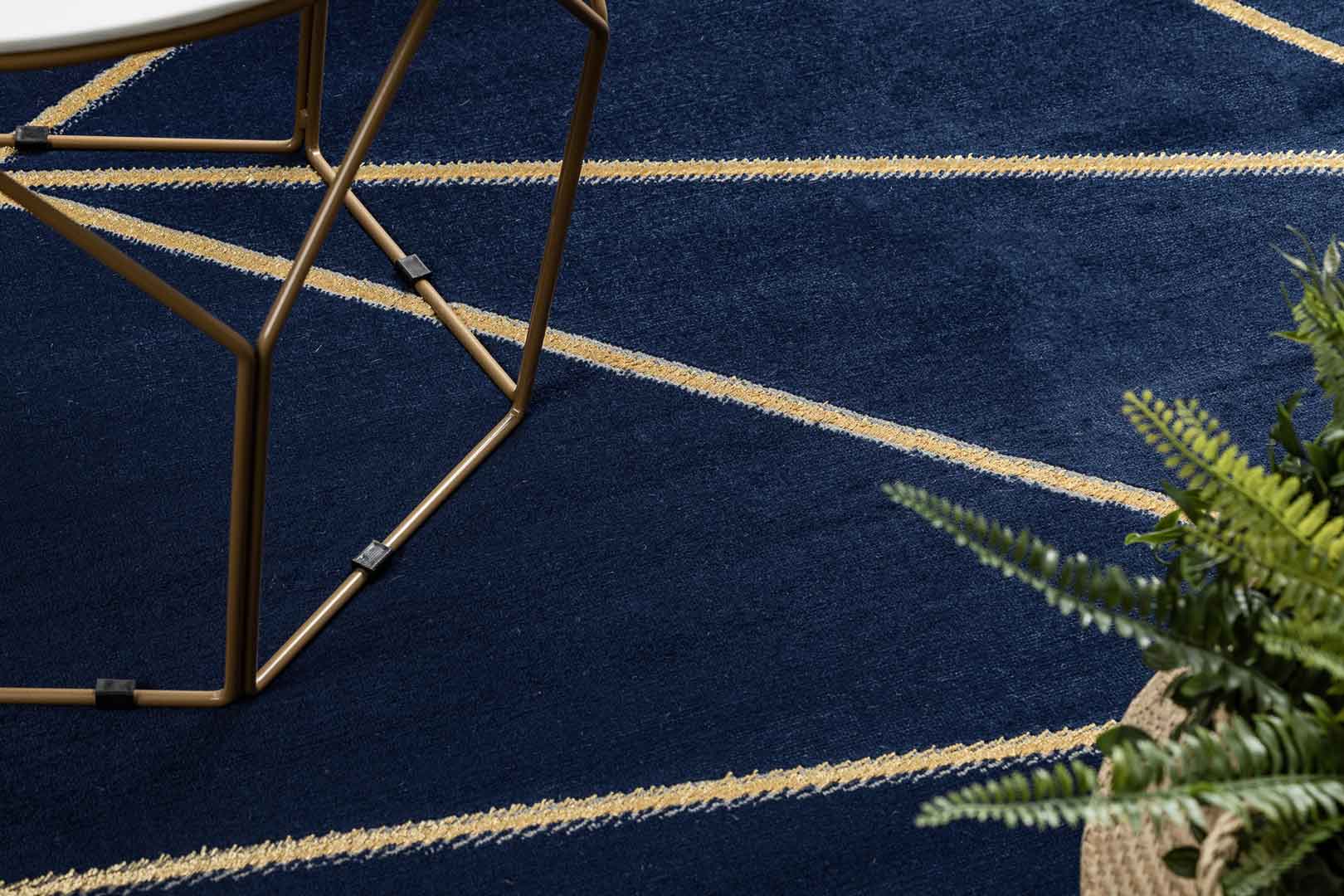 Dywan granatowy ze złotym wzorem geometrycznym glamour ekskluzywny elegancki stylowy