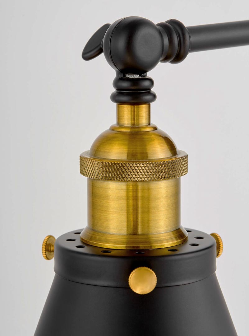 Dekoracyjny, industrialny kinkiet ścienny RUBI W1 z czarnym, stożkowym abażurem. Wykonany w stylu retro vintage. Idealnie nadaje się do loftowych wnętrz. Ta lampa ścienna posiada efektowny, metalowy klosz oraz ozdobne śruby.