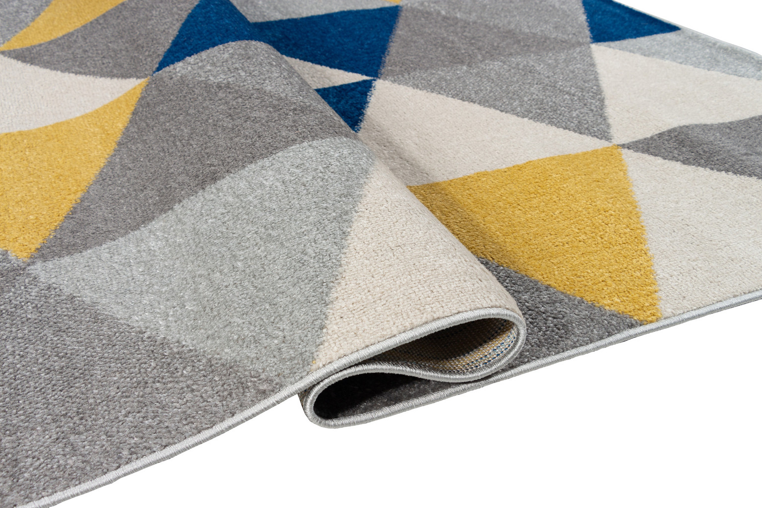 Jasny dywan geometryczny w żółte, szare i niebieskie trójkąty River Stream 04