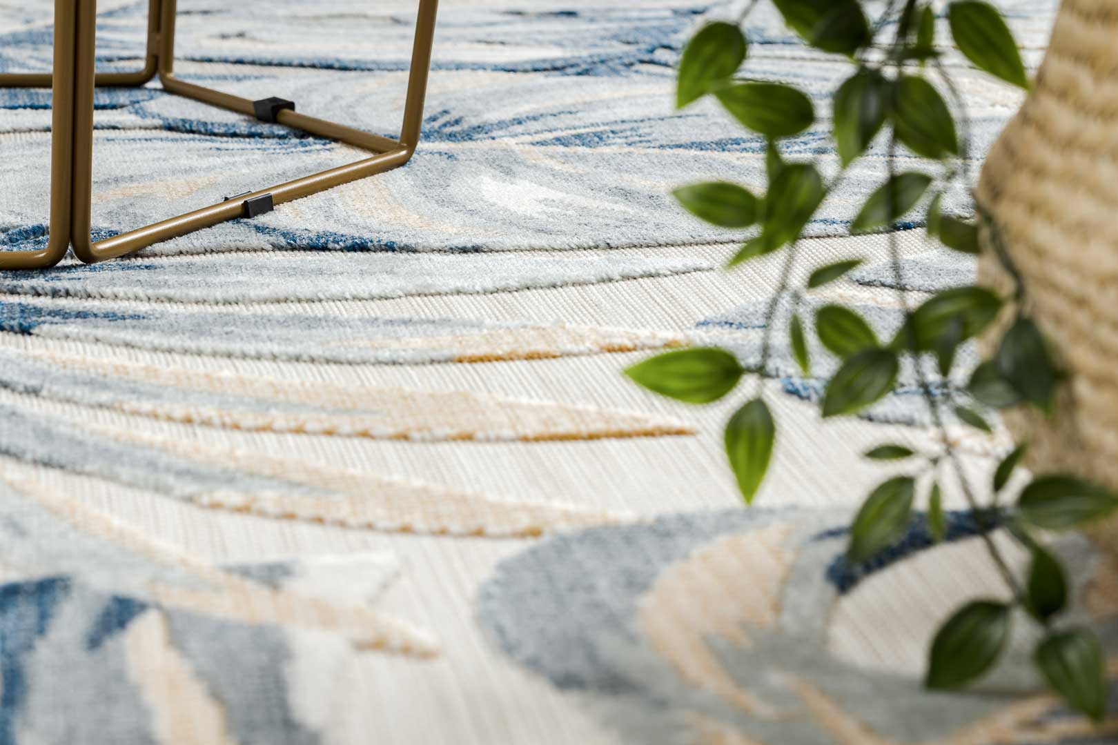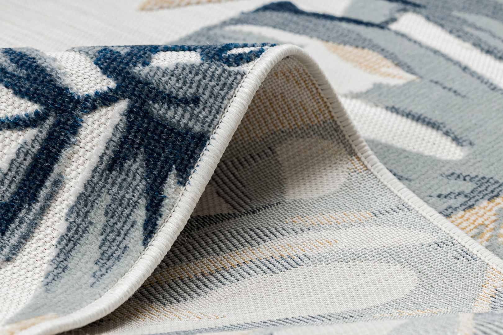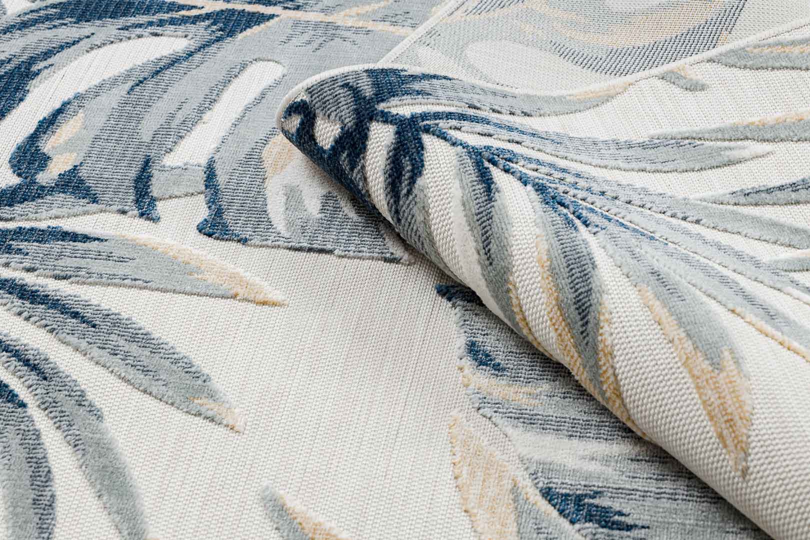 Szukasz roślinnego akcentu? Ten przyciągający uwagę dywan w liście monstery i palmy w szaro-niebieskich kolorach, z domieszką żółtej barwy to może być jeden z najlepszych wyborów, który doskonale podkreśli każde wnętrze i doda mu elegancji! Odporne na warunki atmosferyczne materiały tworzące dwupoziomowe i miękkie runo, pozwolą na utrzymanie dywanu w czystości i świeżości przez długi czas - nawet na zewnątrz domu.