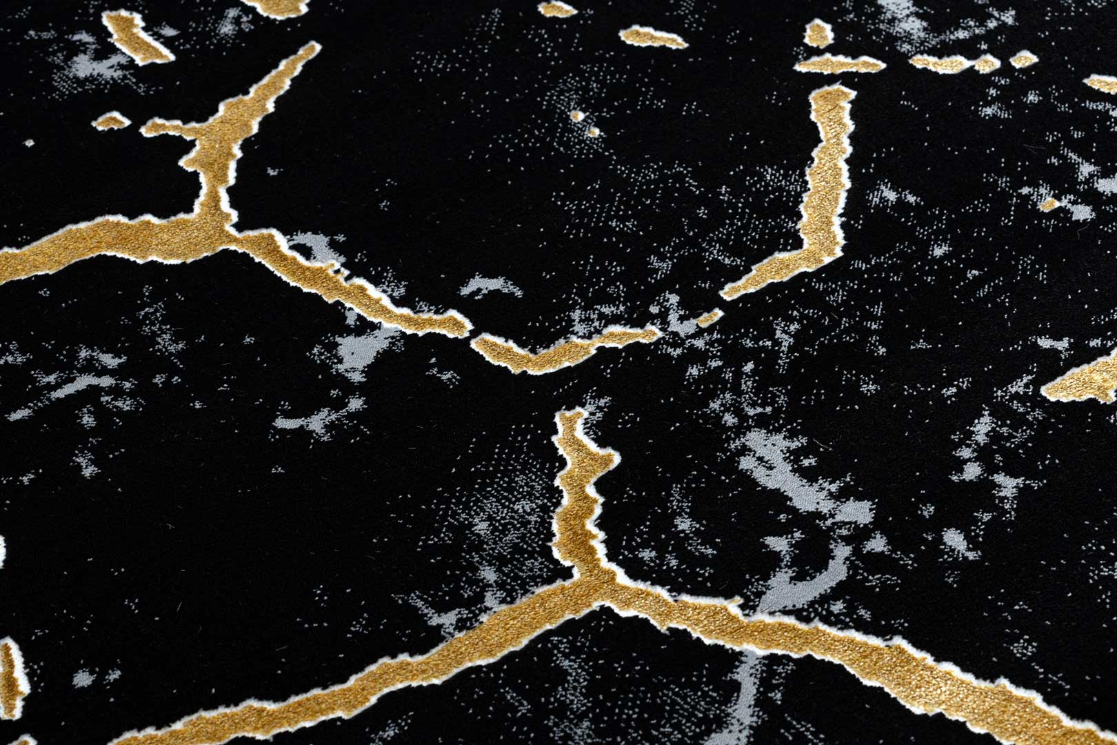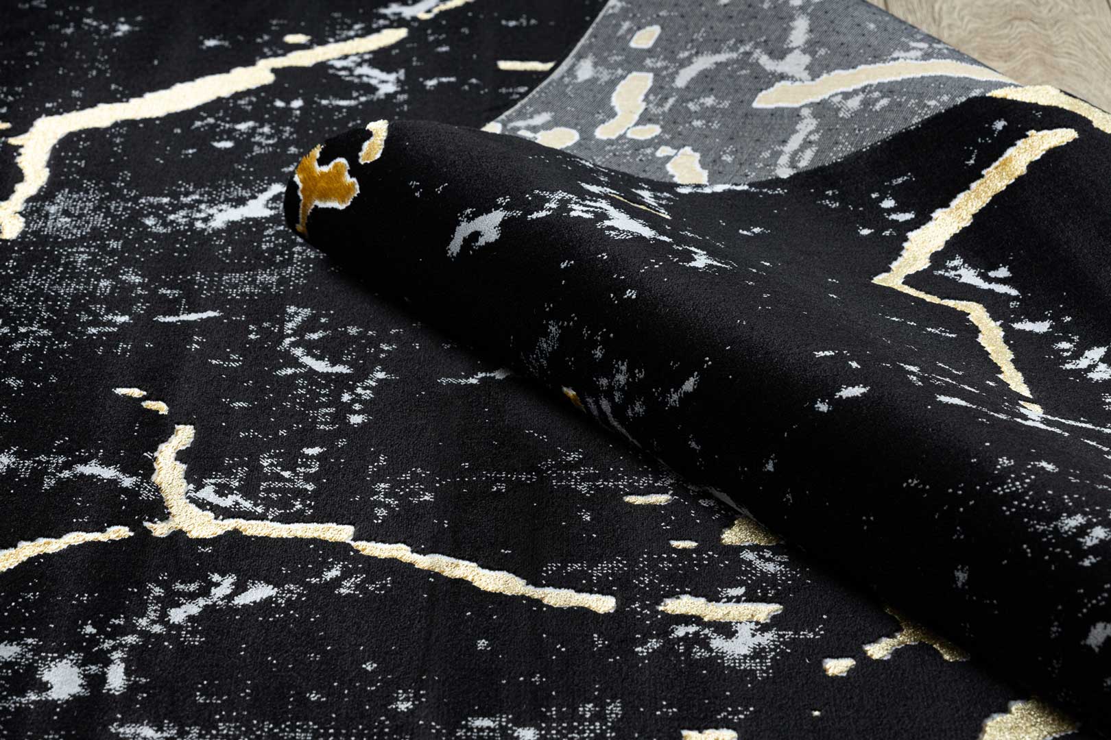 Kamienny syntetyczny dywan marmur glamour w czarnym kolorze ze złotymi pęknięciami