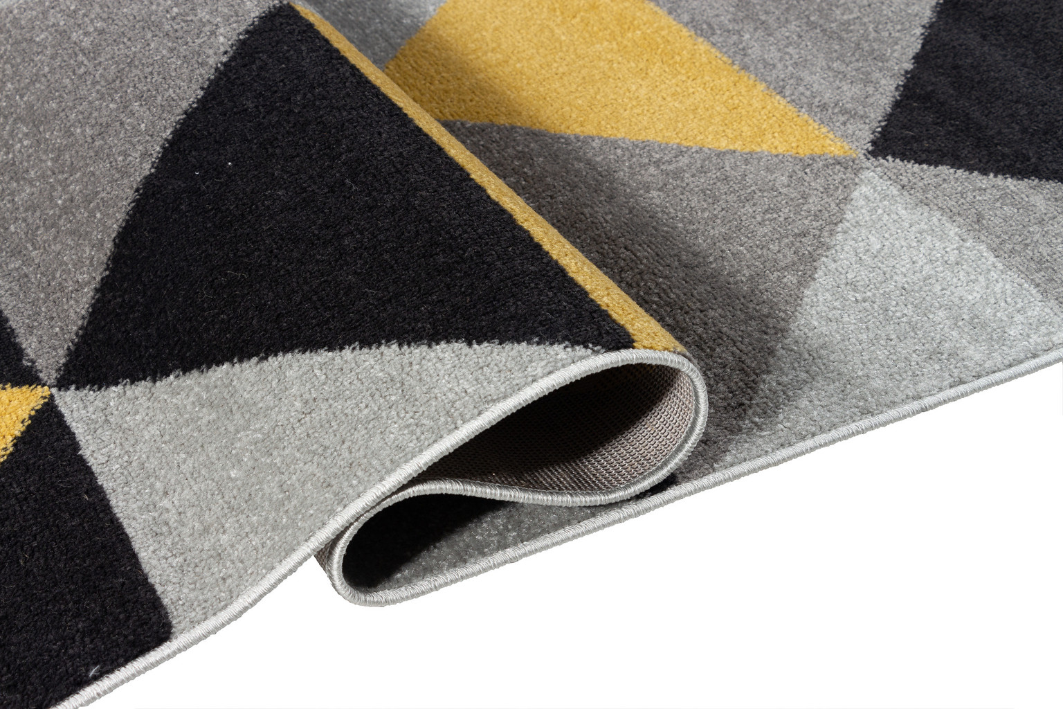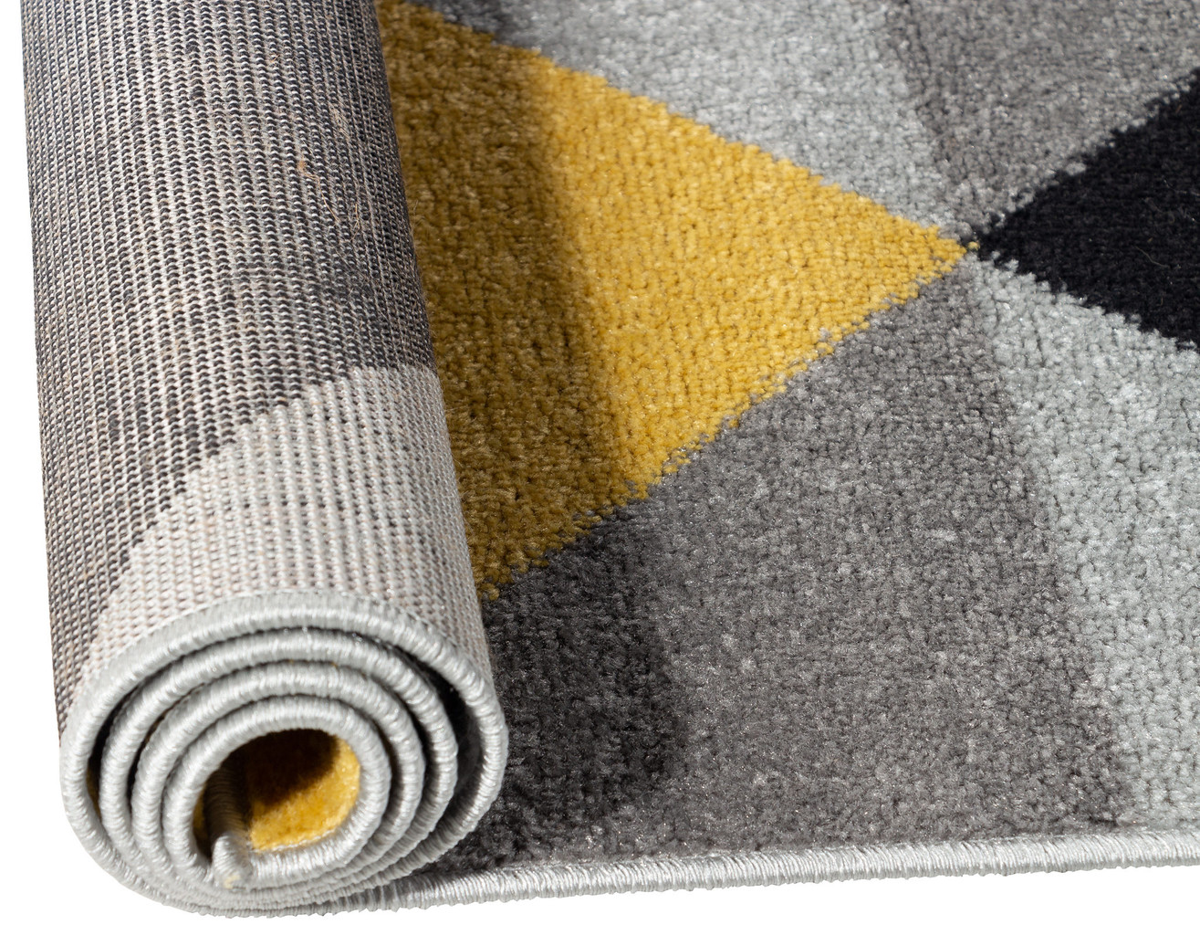 Kolorowy dywan do pokoju w trójkąty szare, czarne, żółte Desert Stream 07