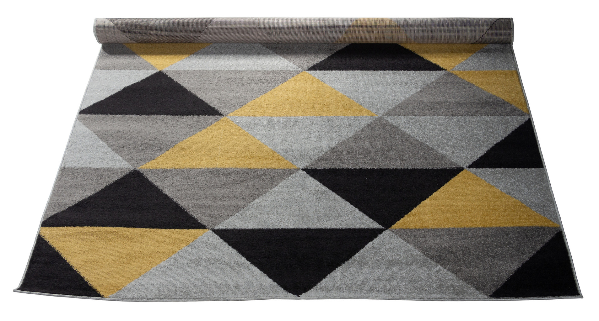 Daj się skusić na ten fenomenalny dywan, w czarne, żółte i szare trójkąty, który wprowadzi ciepło i pozytywną energię do ulubionego miejsca w Twoim domu. Dzięki materiałowi, który został wykorzystany do jego produkcji oferuje on miękkość, elastyczność i doskonały wygląd przez długi czas.