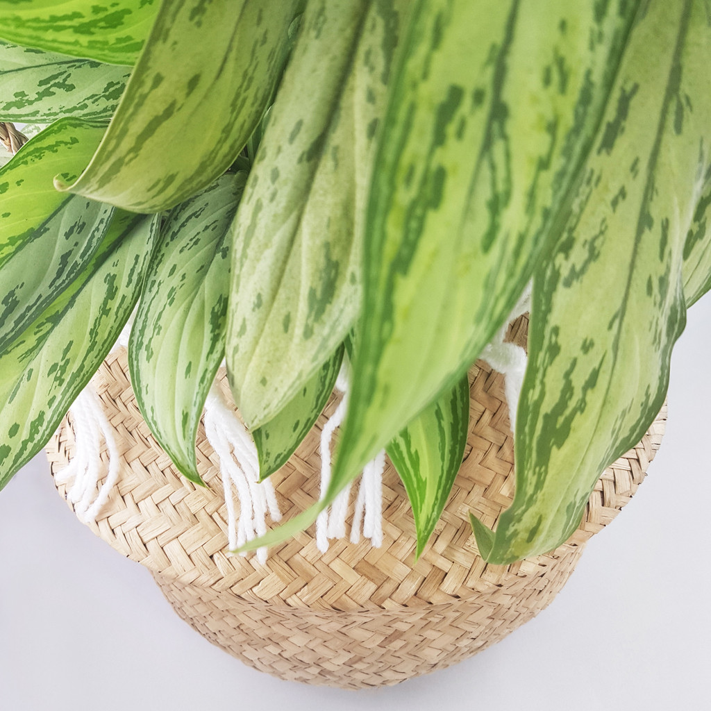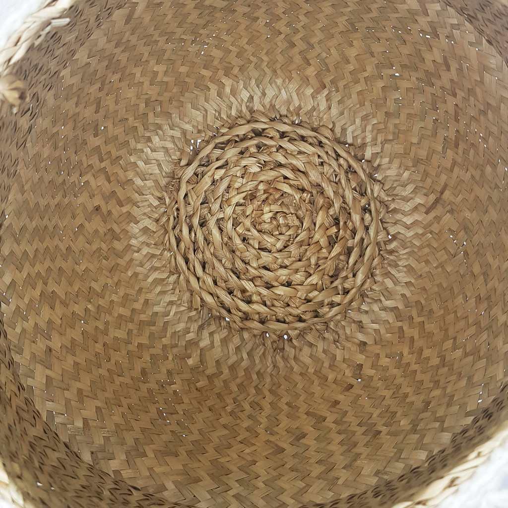 Ręcznie pleciony naturalny kosz z suszonej trawy morskiej z białymi frędzlami w stylu boho wykonanymi z bawełny. Idealnie sprawdzi się jako dekoracja do mieszkania, osłonka na doniczki, miejsce do schowania zabawek, koców, poduszek oraz w życiu codziennym jako stylowy kosz na owoce lub warzywa z własnego ogródka.