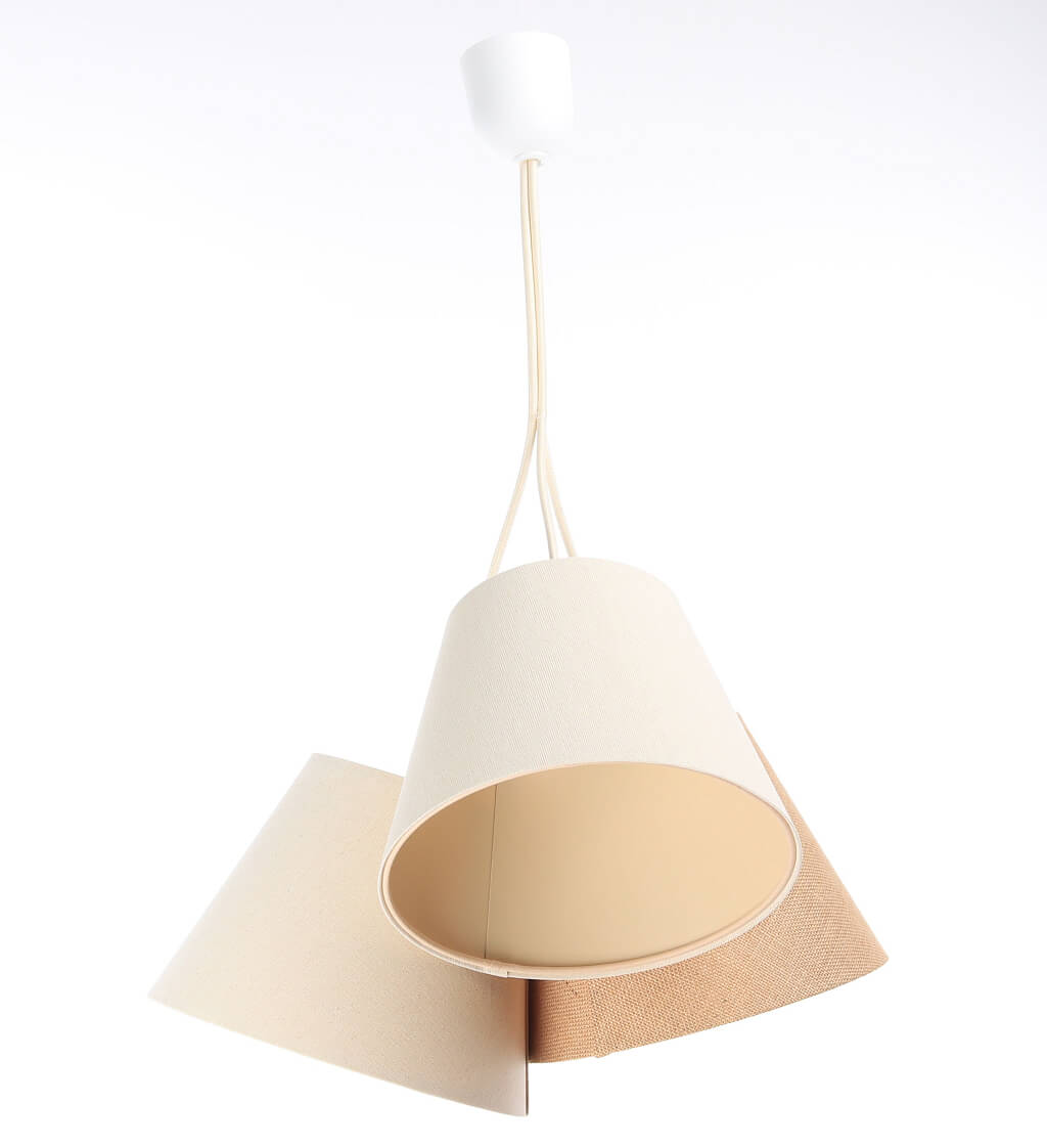 Potrójna, stożkowa lampa wisząca z pikowanej tkaniny jaśminowej JASMINE BEBE