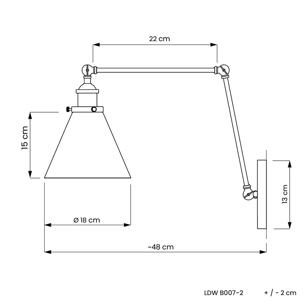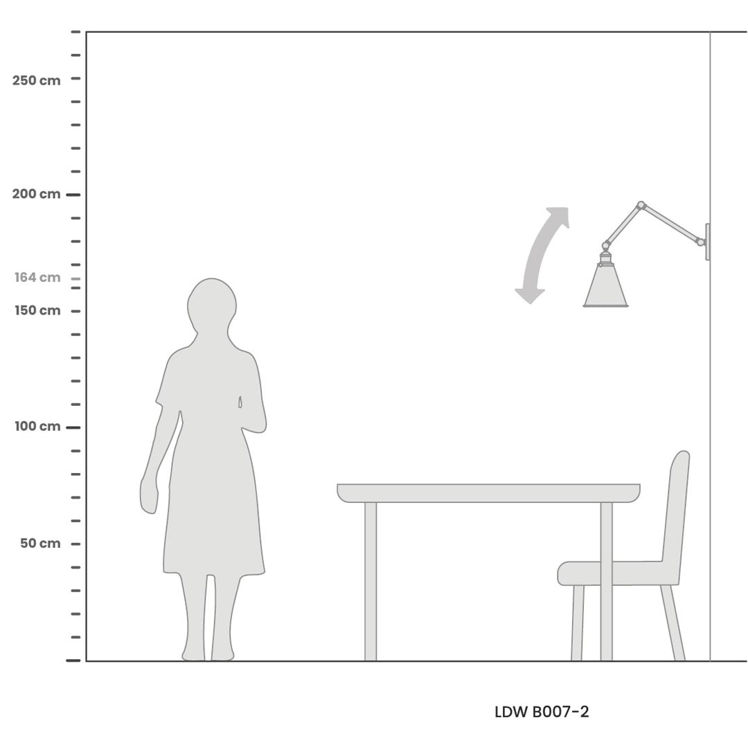 Kinkiet nie posiada własnego włącznika światła. Domyślnie mocuje się go do już istniejącego punktu świetlnego i włącza za pomocą tradycyjnego włącznika ściennego. Aby podłączyć kinkiet do gniazdka ściennego, kabel zewnętrzny do gniazdka można wykonać we własnym zakresie.