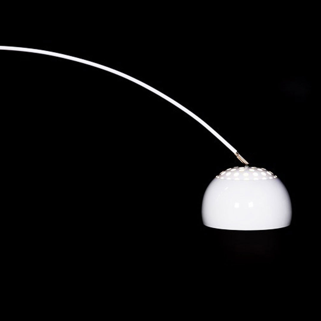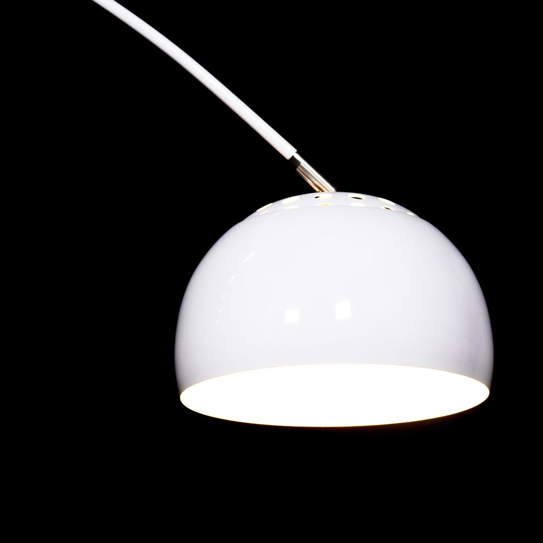 Nowoczesna, biała lampa podłogowa AZURRO wykonana z metalu. Posiada elegancką, stabilną, granitową podstawę. Do wyboru dwa warianty różniące się wielkością klosza.