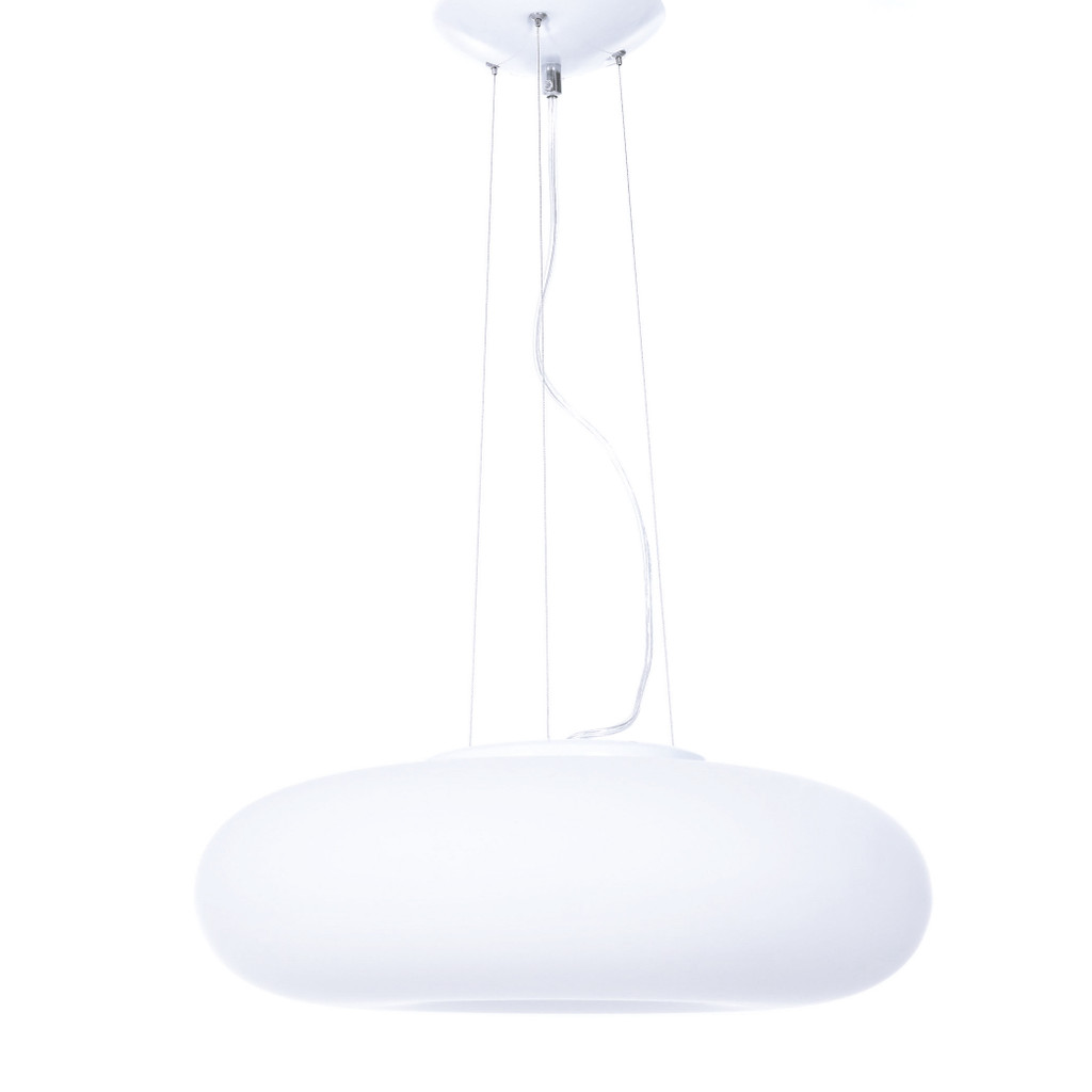 Biała, szklana lampa wisząca BIANTE o gładkiej powierzchni klosza. Nowoczesny design. Przy zapalonej ciepłej barwie światła klosz przybiera kolor kremowy. Dwa rozmiary do wyboru.